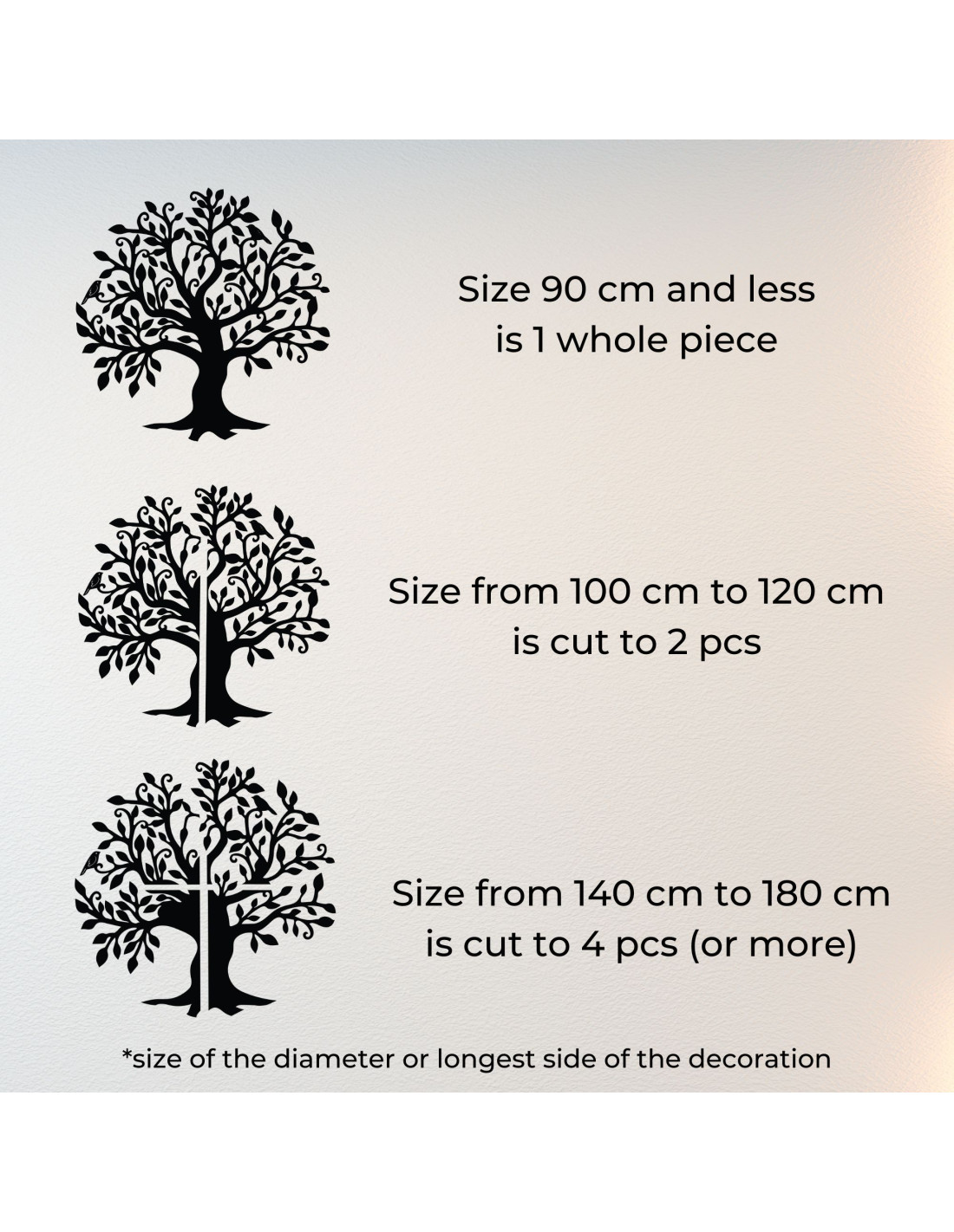 (Jeśli dekoracja ma inny kształt niż koło, podane wymiary odnoszą się do najdłuższego boku.)