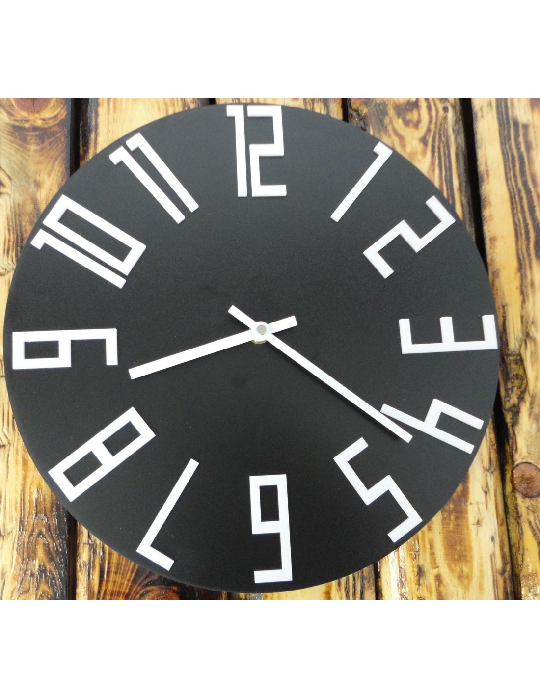 Nowoczesny model wykonany z wysokiej jakości płyty HDF zachwyca minimalistycznym wzornictwem – czarne tło i wyraziste, białe cyfry tworzą kontrastowy wzór, który natychmiast ożywi każdą ścianę.