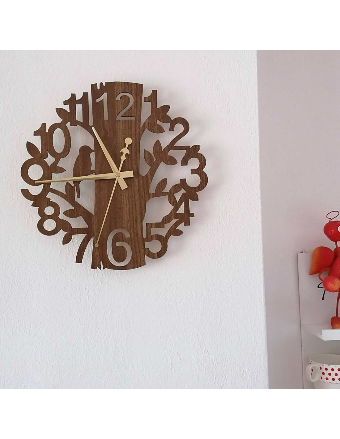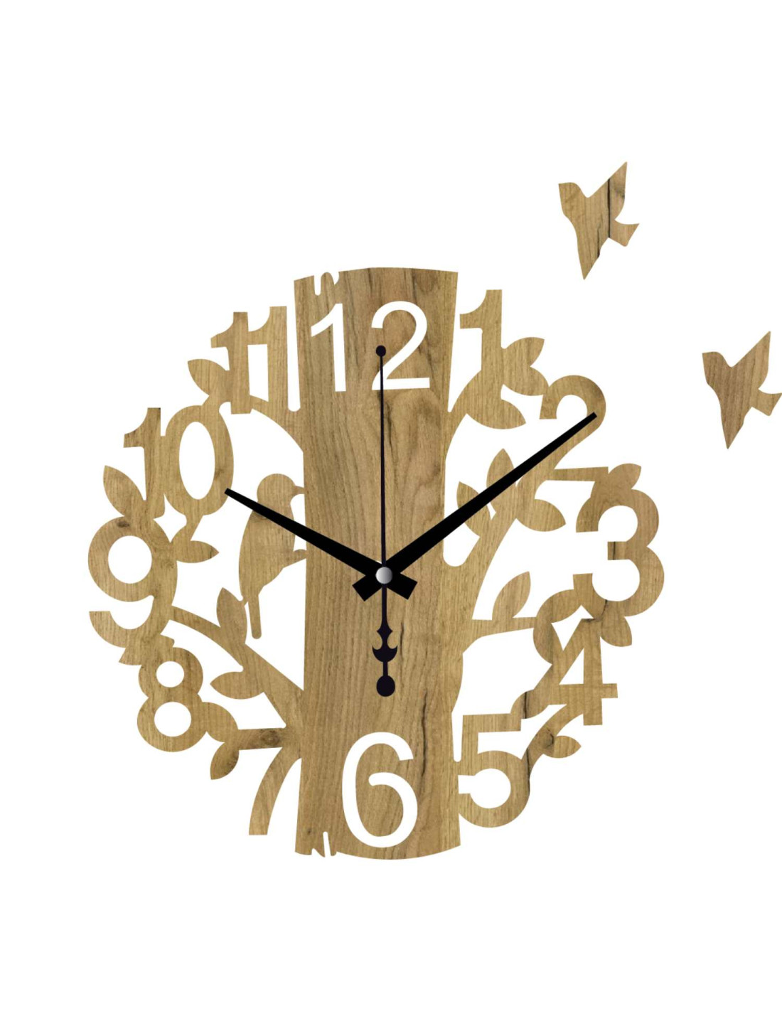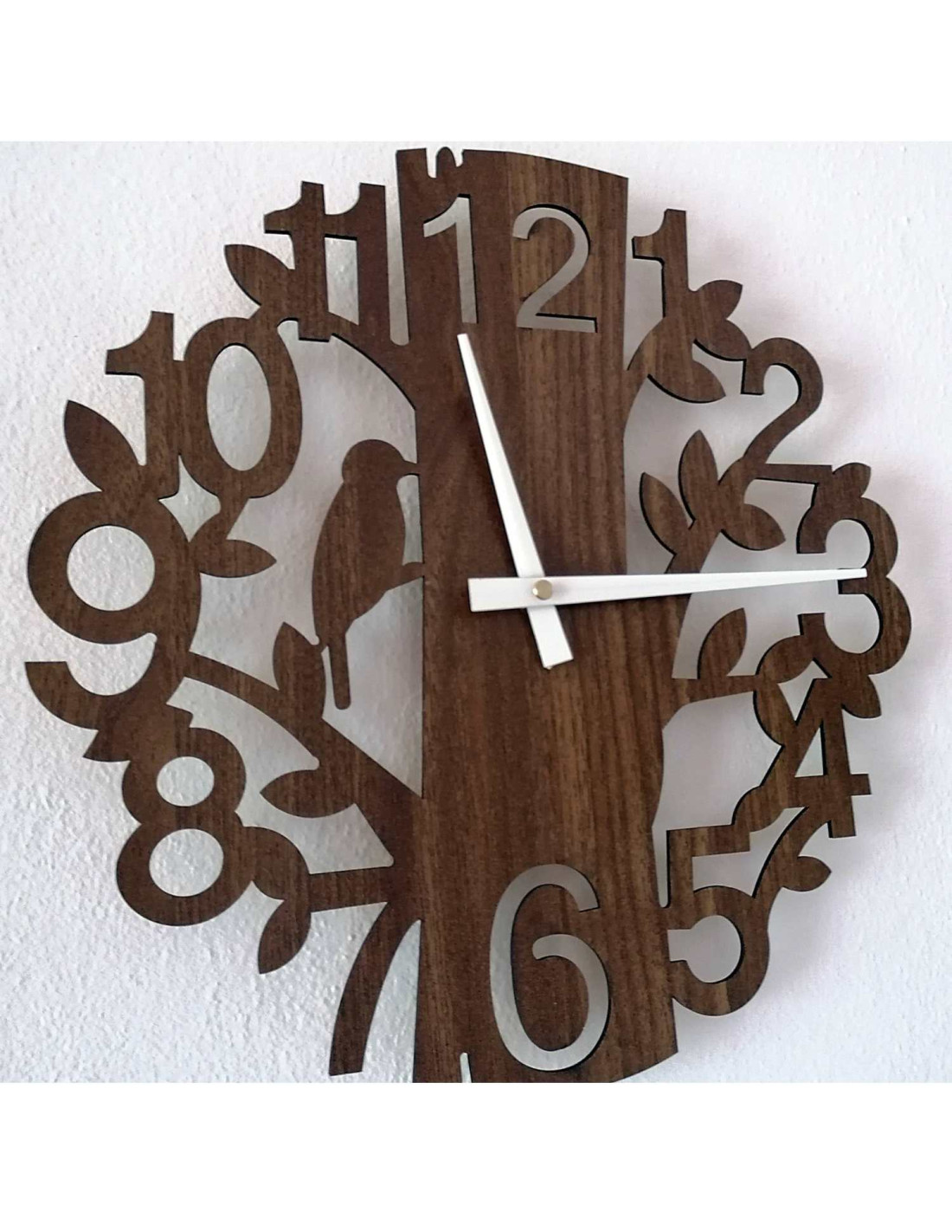 Bird Clock to drewniany zegar ścienny łączący precyzyjne odmierzanie czasu z naturalną estetyką .