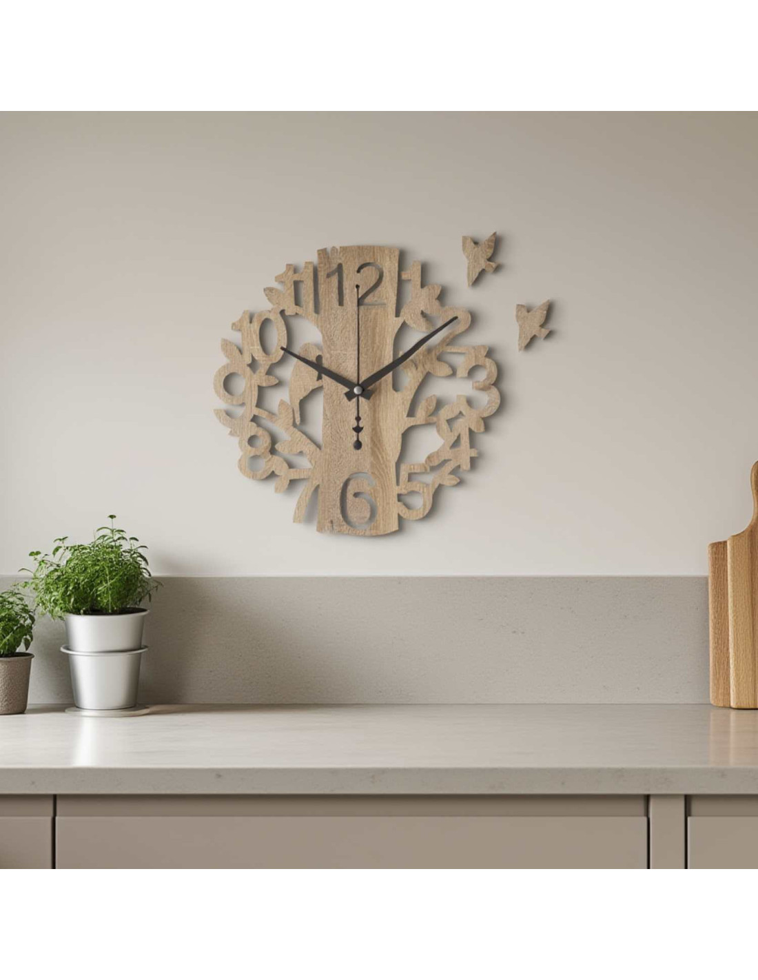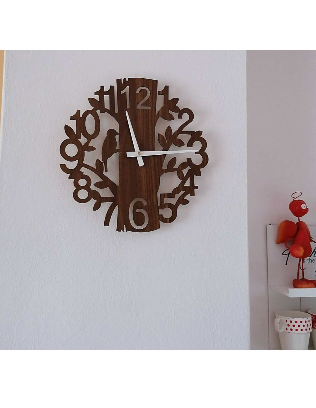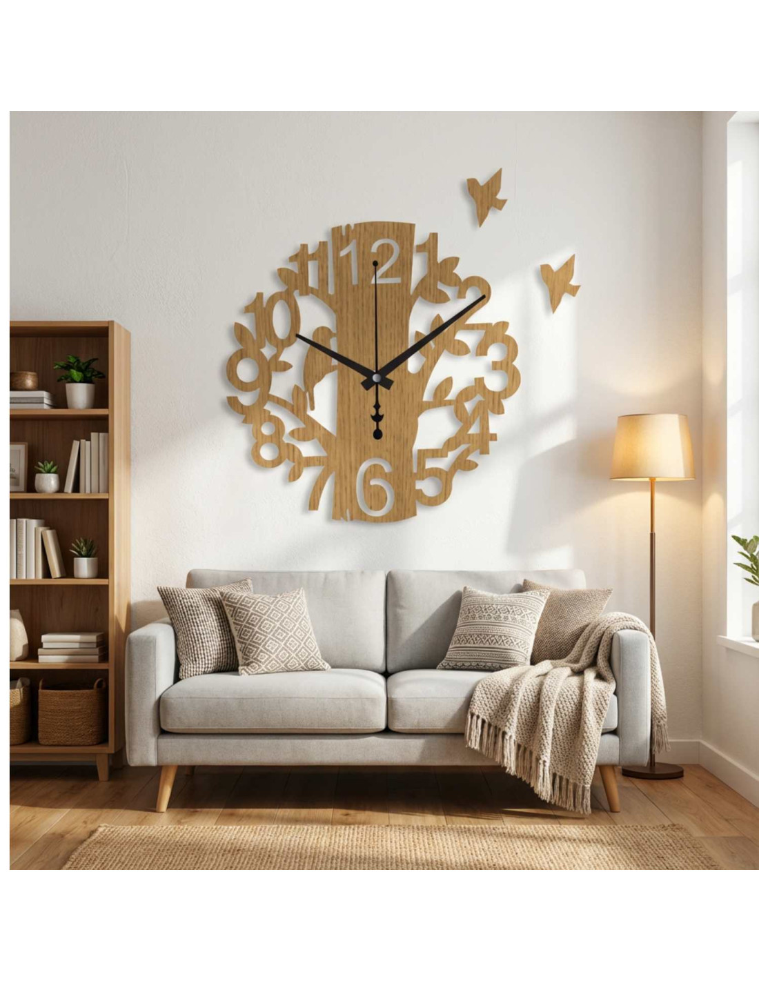 Bird Clock to drewniany zegar ścienny łączący precyzyjne odmierzanie czasu z naturalną estetyką .