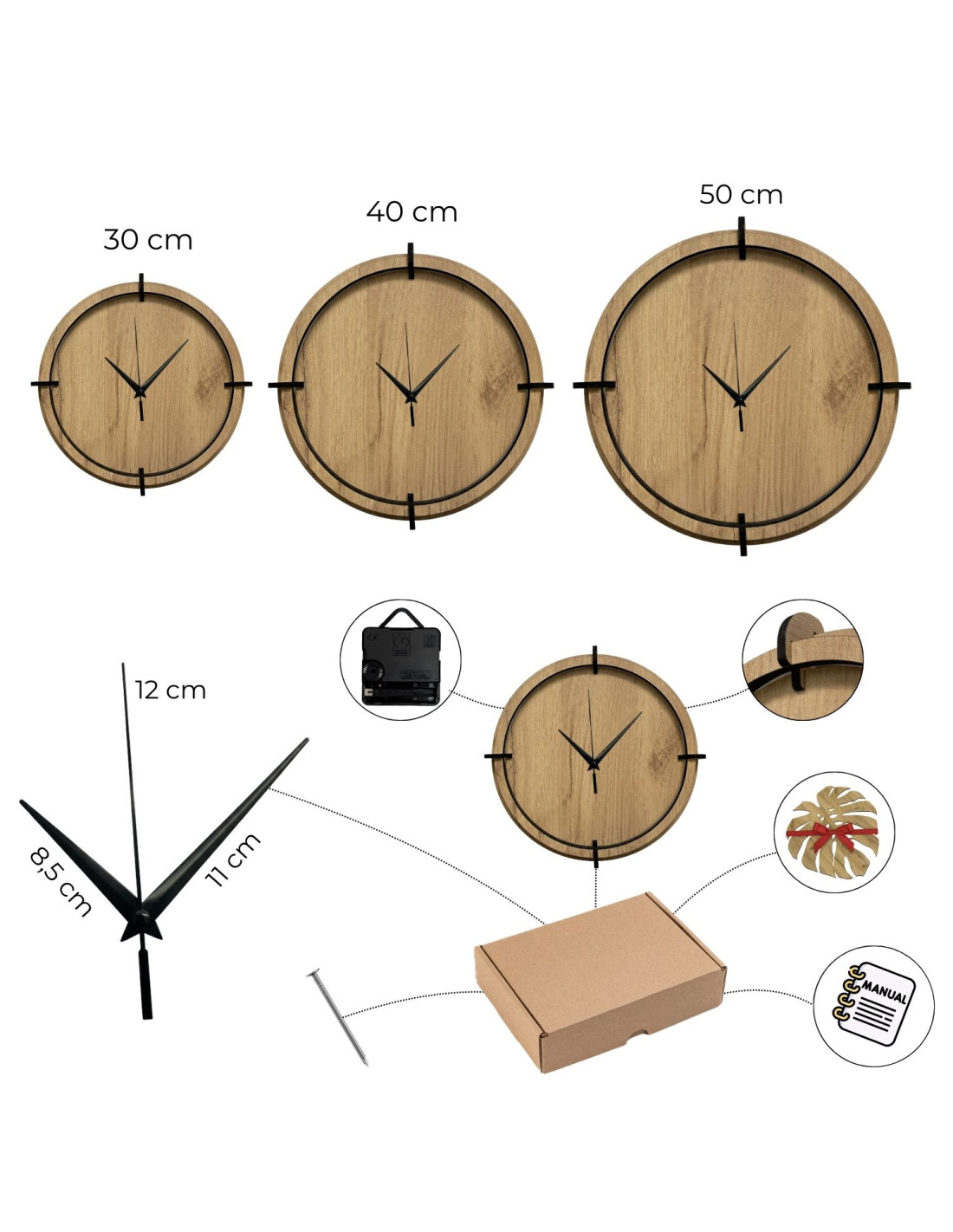 Niezależnie od tego, czy szukasz nowoczesnego zegara ściennego do swojego wnętrza w stylu naturalnym, skandynawskim czy minimalistycznym, ten zegar wykonany z wysokiej jakości płyty HDF wniesie do Twojej przestrzeni spokój, równowagę i subtelną elegancję.