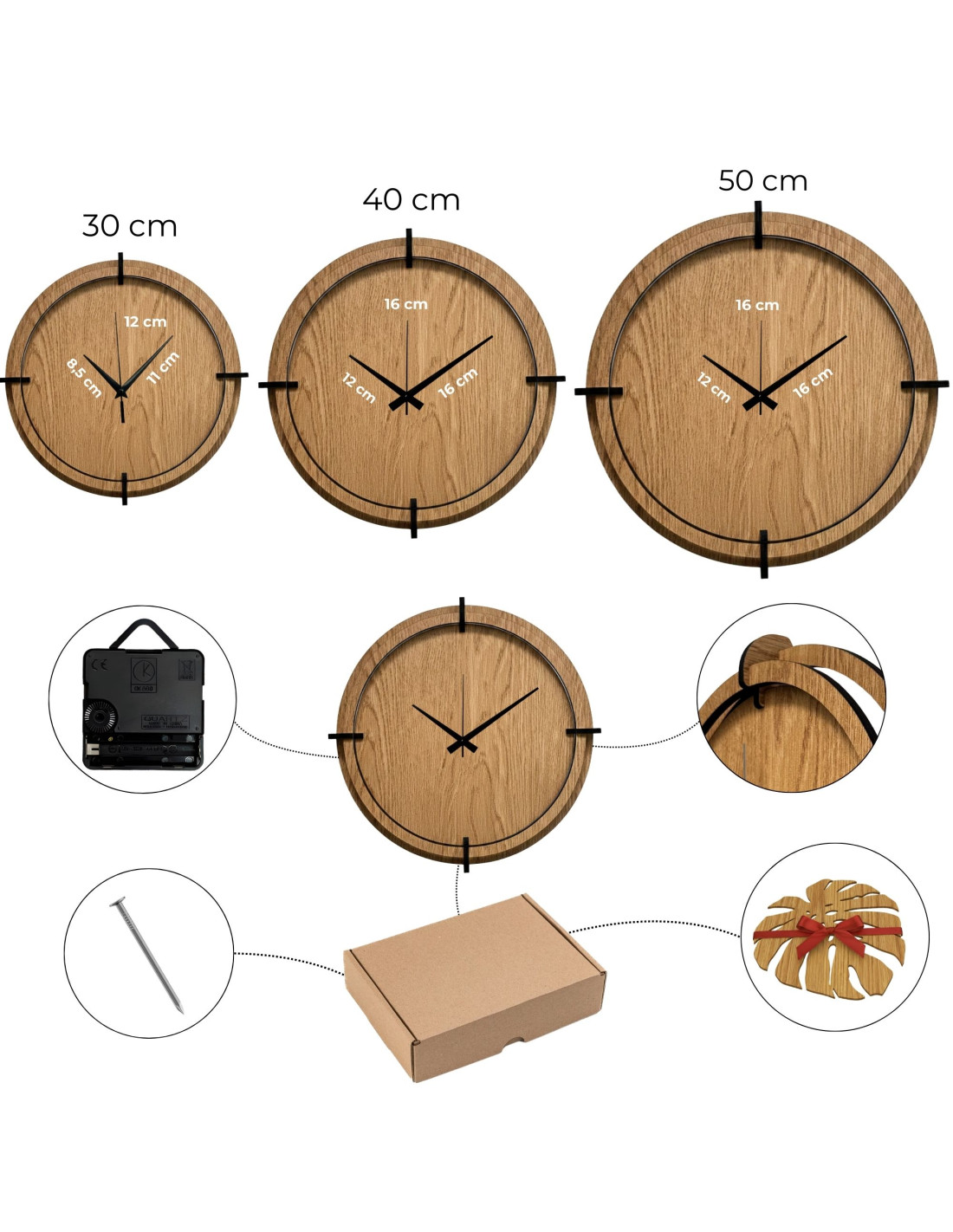 - Średnica zegara: do wyboru 30 cm, 40 cm lub 50 cm
