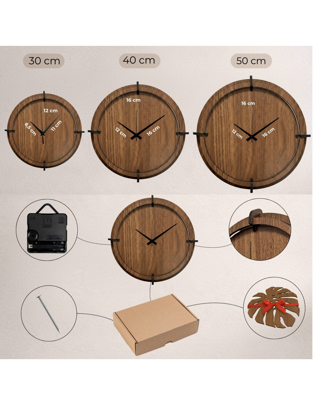 Niezależnie od tego, czy szukasz nowoczesnego zegara ściennego do swojego wnętrza w stylu naturalnym, skandynawskim czy minimalistycznym, ten zegar wykonany z wysokiej jakości płyty HDF w dekorze Wenge wniesie elegancję, równowagę i ponadczasowy charakter do Twojej przestrzeni.
