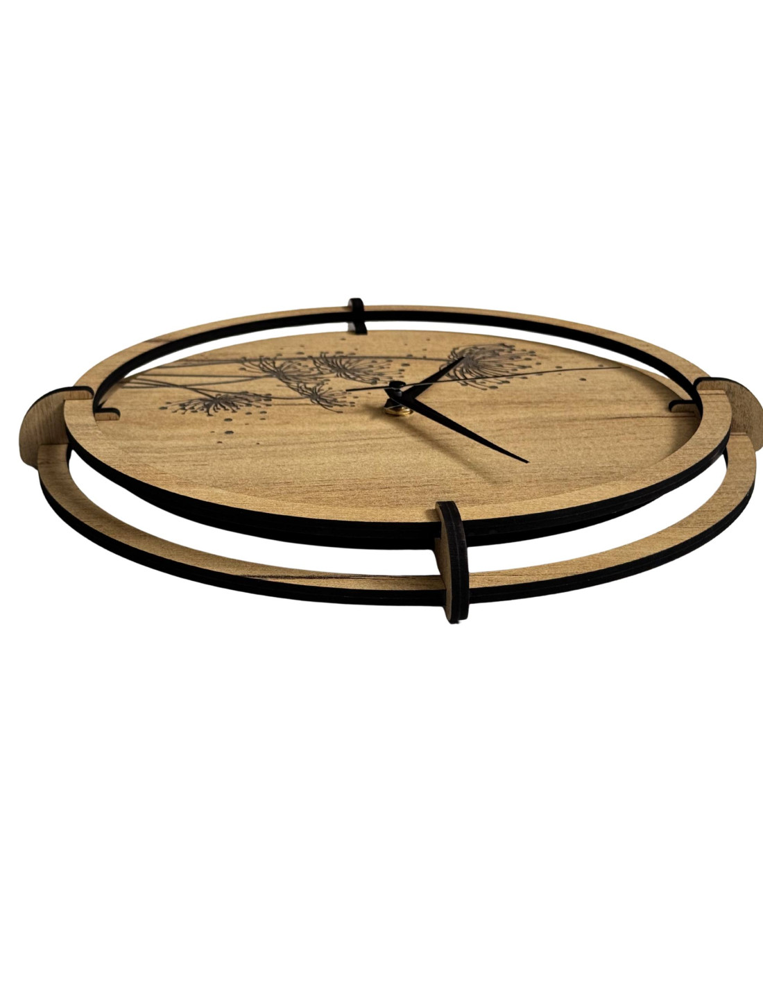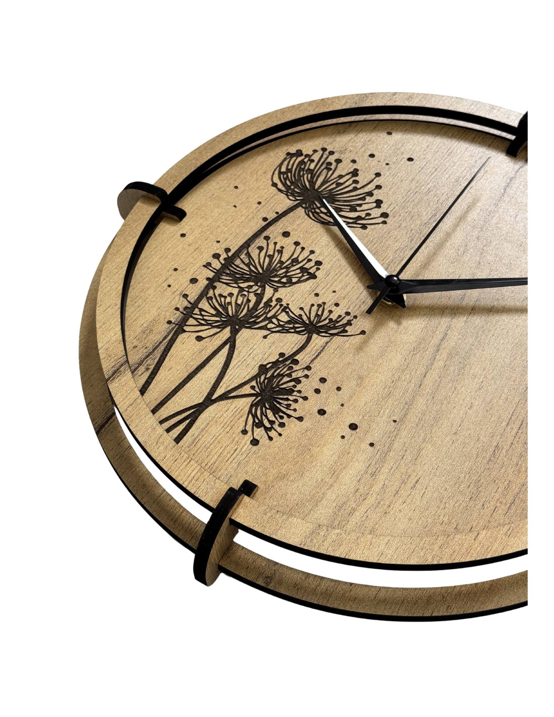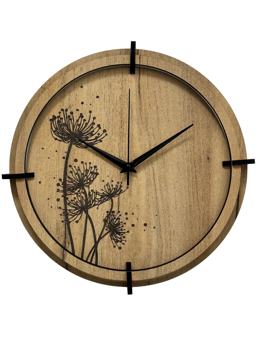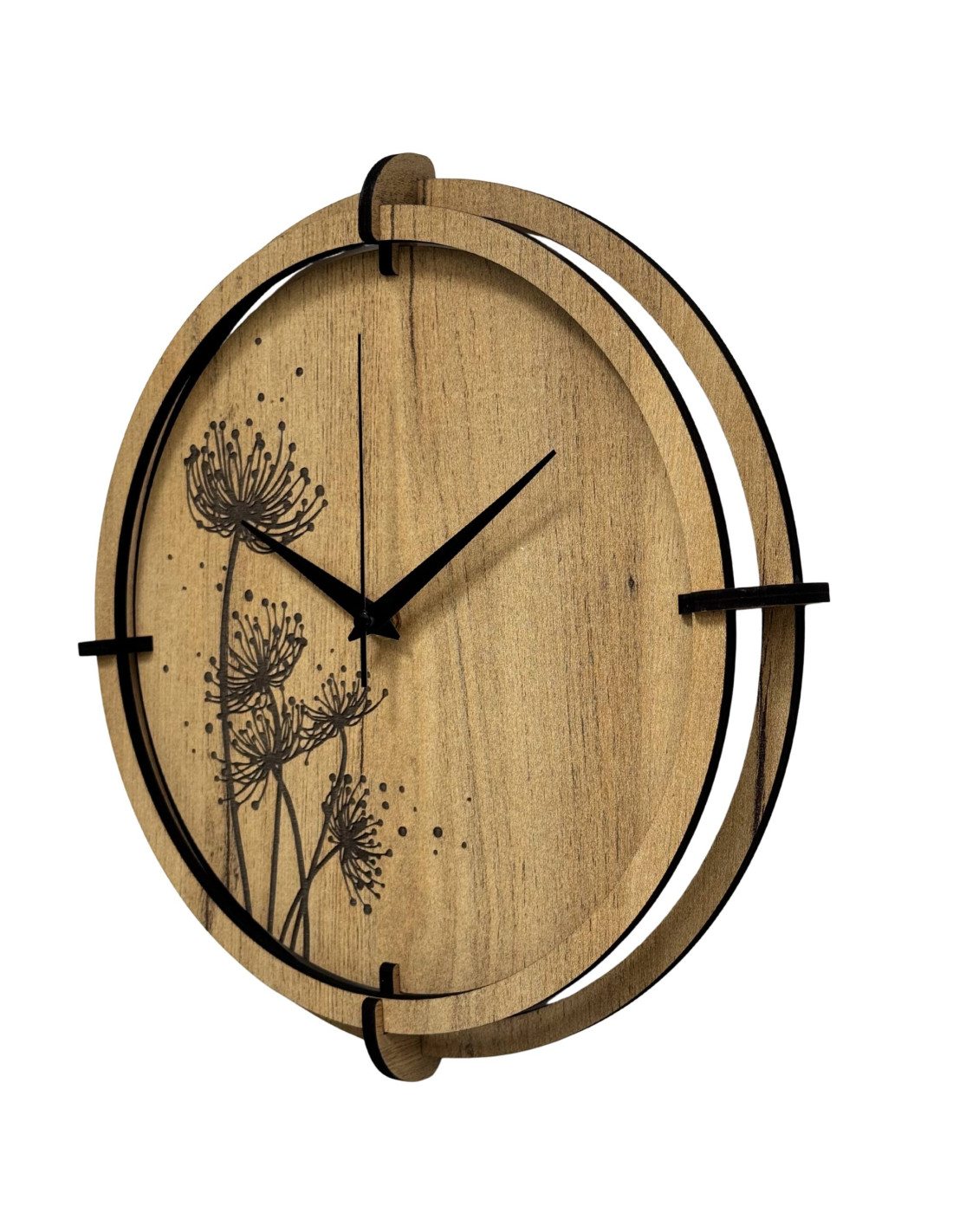 Drewniane zegary z grawerowanymi motywami roślinnymi łączą w sobie estetykę natury z precyzyjnym pomiarem czasu i cichą pracą mechanizmu.