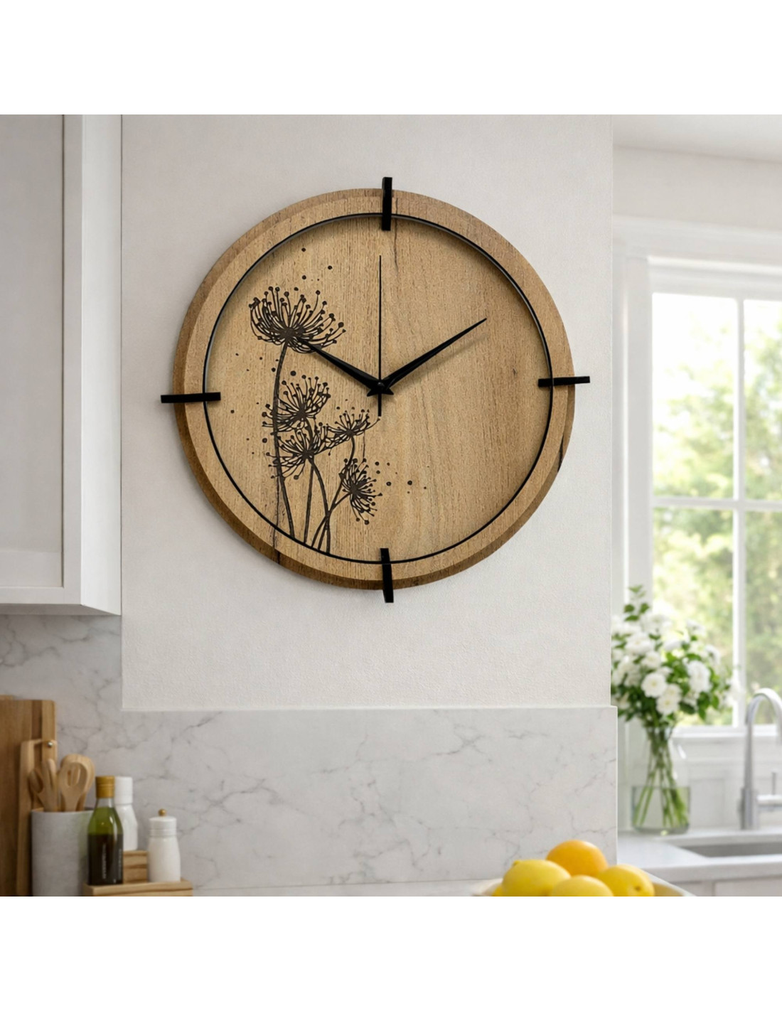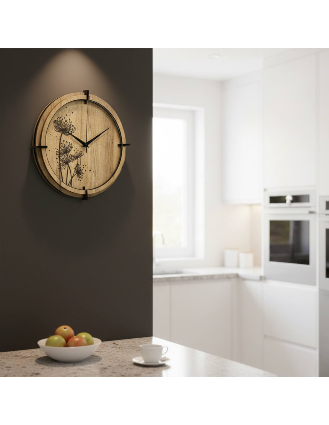 Jeśli szukasz nowoczesnego zegara ściennego do swojego wnętrza w naturalnym, skandynawskim lub minimalistycznym stylu, ten zegar z płyty HDF wniesie do Twojej przestrzeni spokój, równowagę i subtelną elegancję.