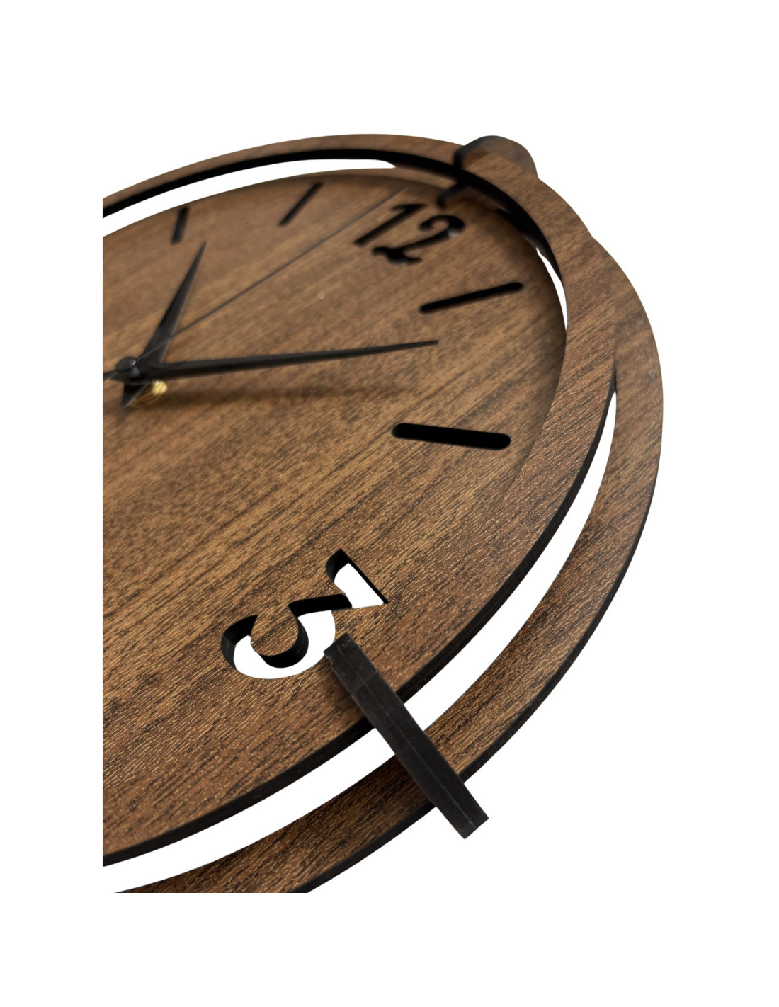 Zegar wykonany jest z najwyższej jakości drewna orzechowego o naturalnym wzorze i precyzyjnym wykonaniu.