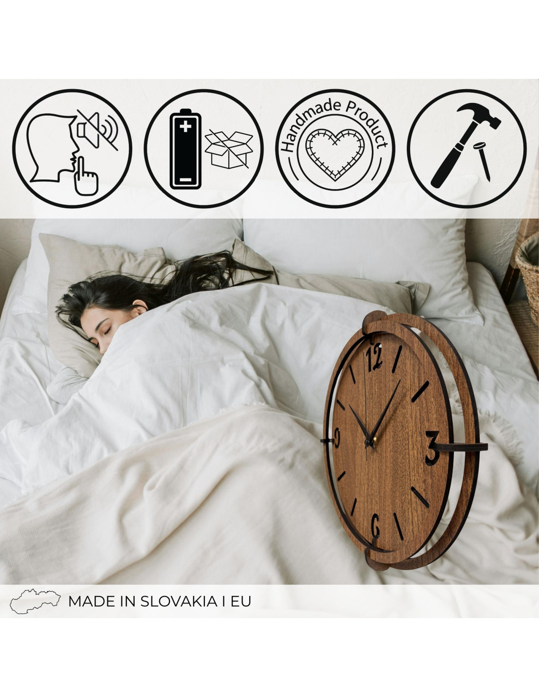 - Cicha praca - mechanizm pozbawiony niepokojącego tykania zapewni Ci spokój ducha podczas odpoczynku i pracy.