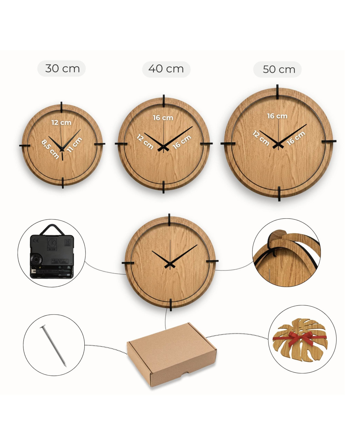 - Średnica zegara: do wyboru 30 cm, 40 cm lub 50 cm