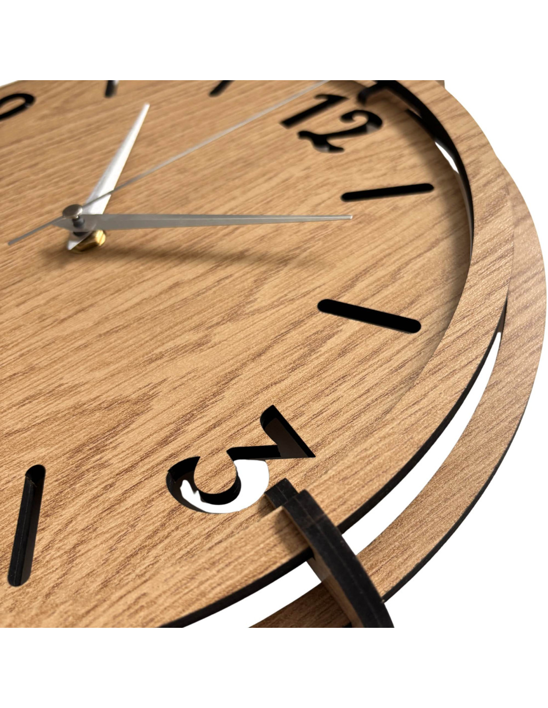 Drewniane zegary z precyzyjnie rzeźbionymi cyframi łączą w sobie nowoczesny design z precyzyjnym pomiarem czasu i cichym mechanizmem.