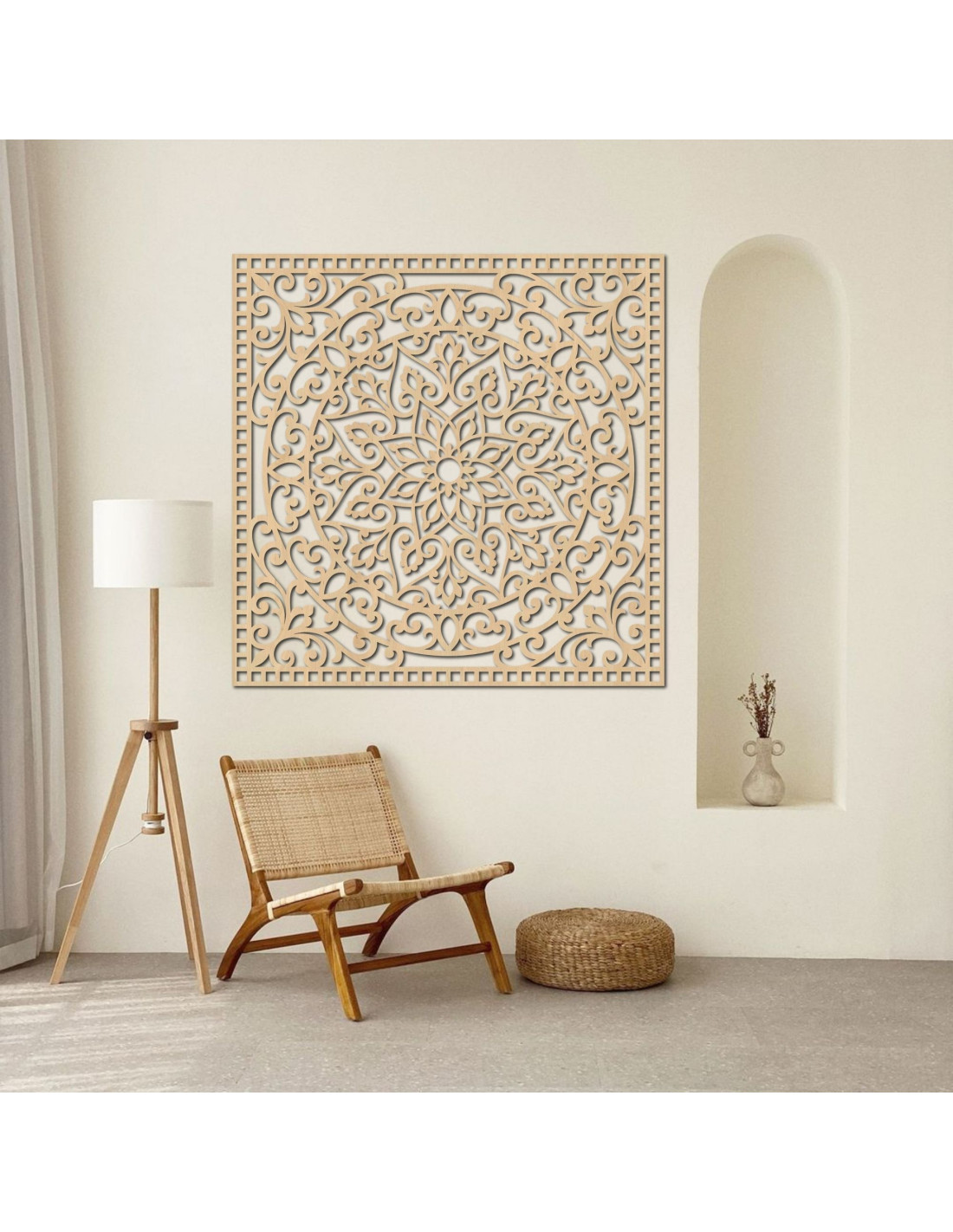 Drewniany kwadratowy obraz orientalnej mandali | KVIDO