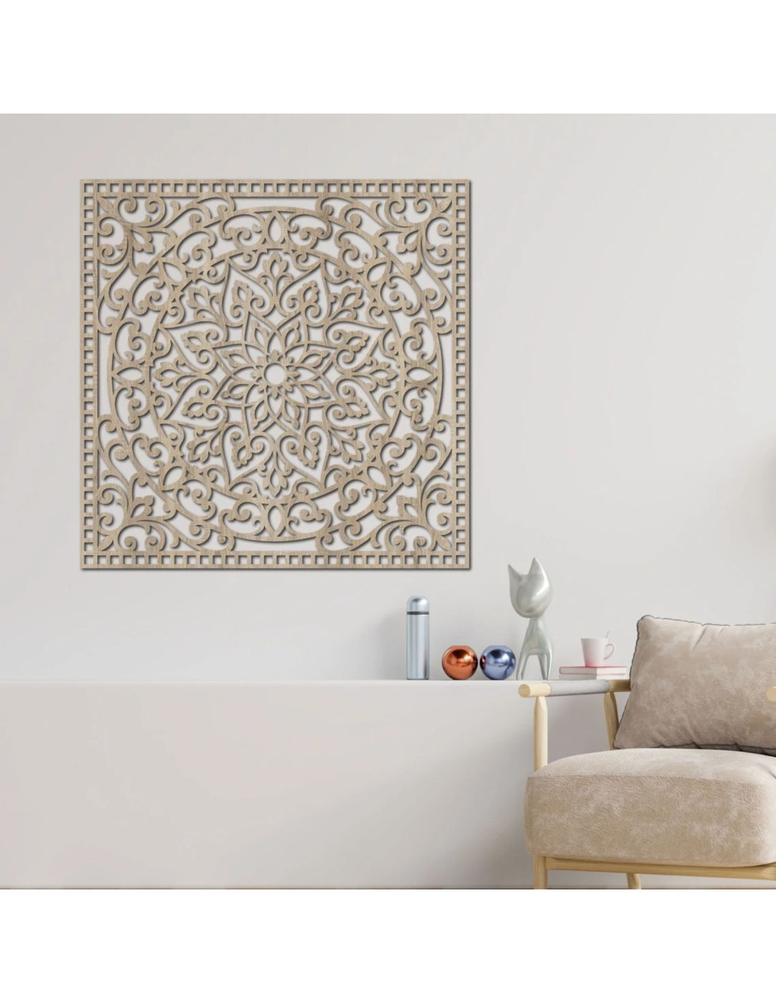 Drewniany kwadratowy obraz orientalnej mandali | KVIDO