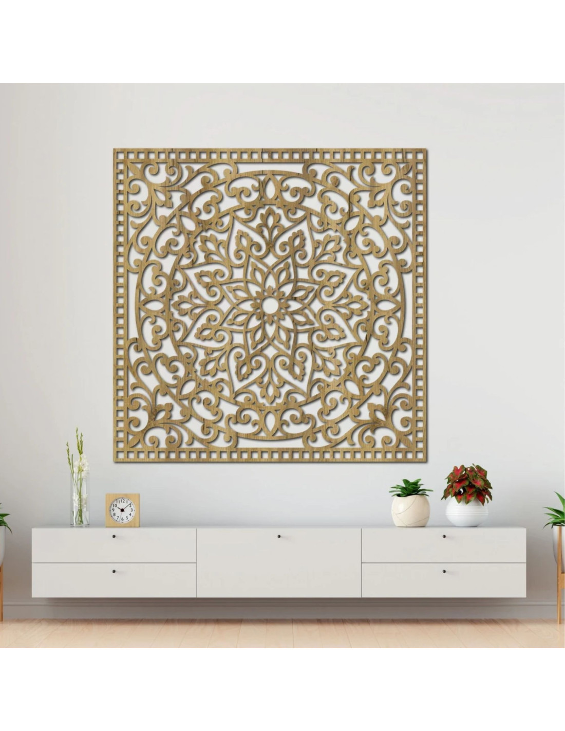 Drewniany kwadratowy obraz orientalnej mandali | KVIDO