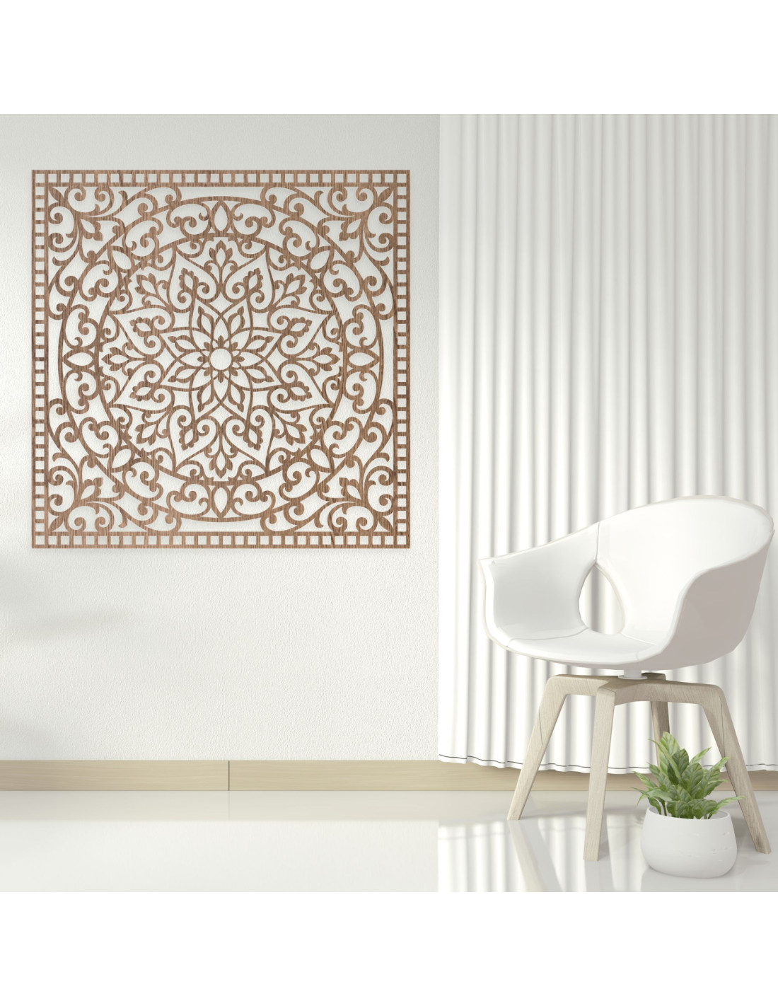 Drewniany kwadratowy obraz orientalnej mandali | KVIDO