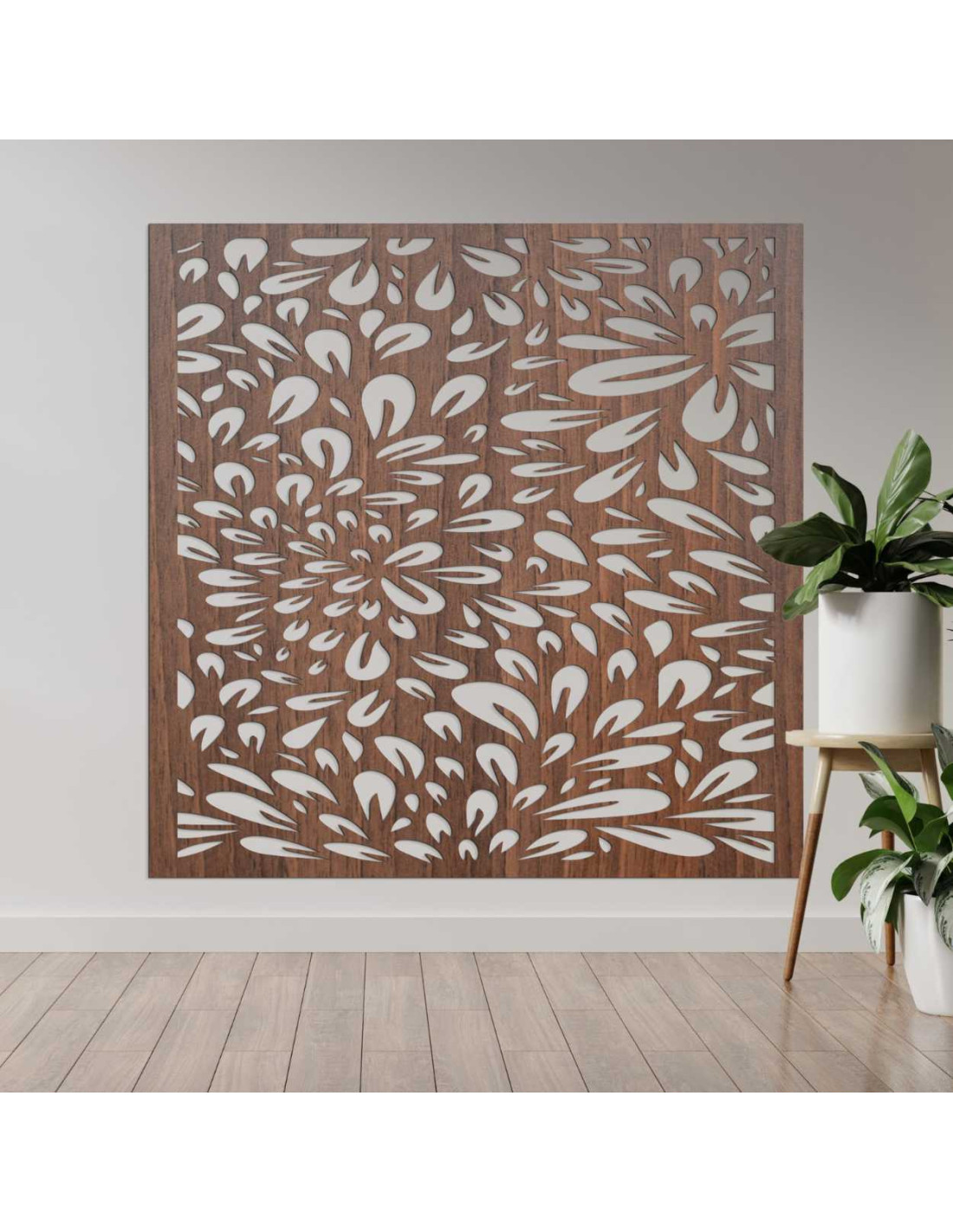 Kwadratowy rzeźbiony panel ścienny z motywem kwiatowym | BOMB