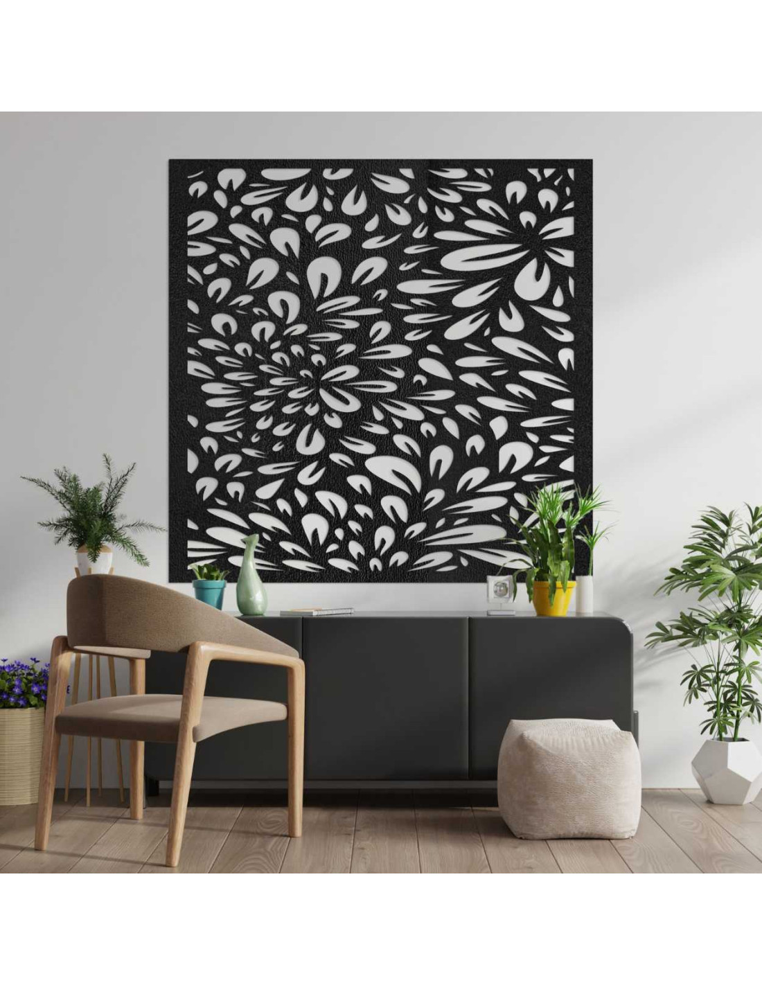 Kwadratowy rzeźbiony panel ścienny z motywem kwiatowym | BOMB