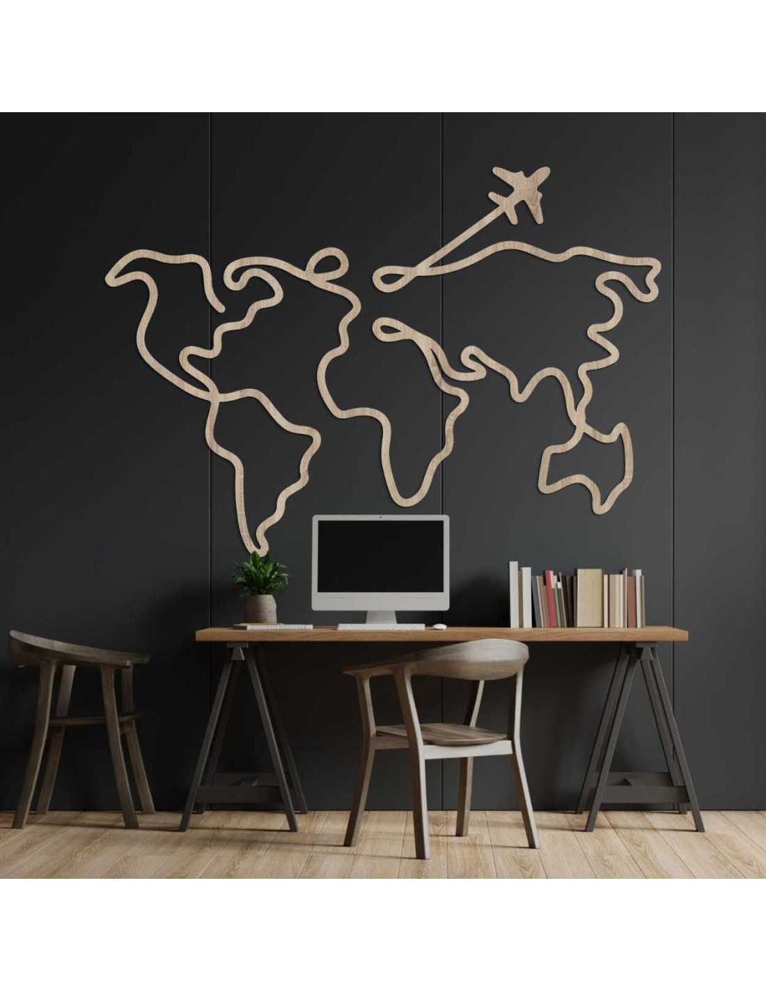 Kształt mapy świata połączony jedną, elegancką kreską stwarza wrażenie nieprzerwanej podróży .