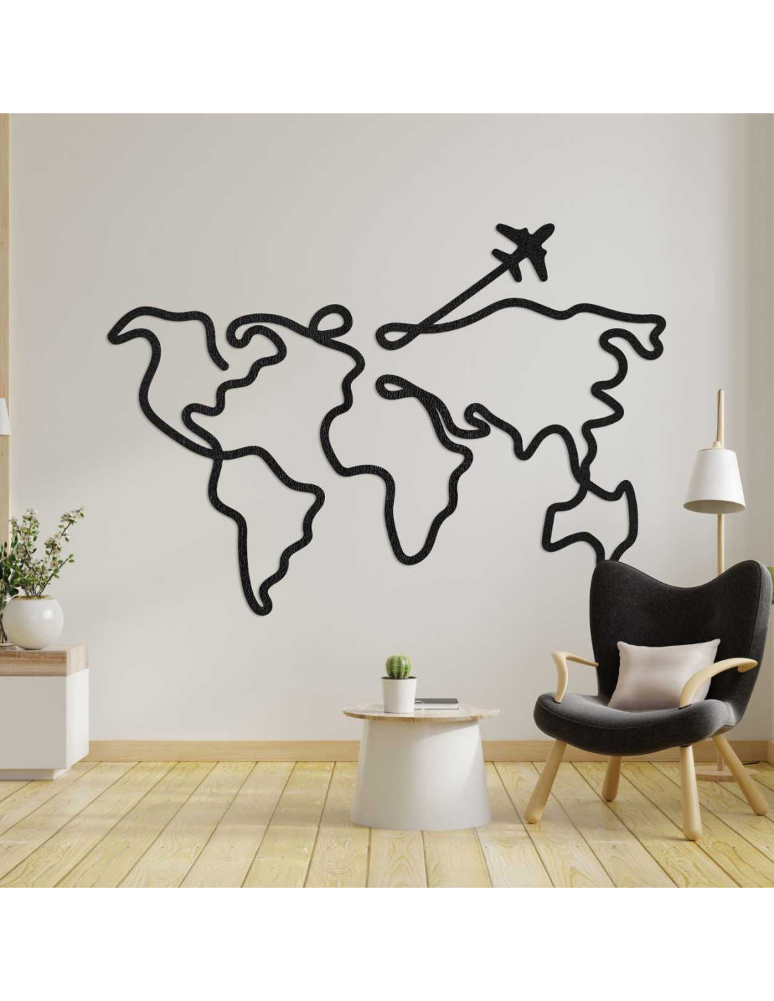 Kształt mapy świata połączony jedną, elegancką kreską stwarza wrażenie nieprzerwanej podróży .