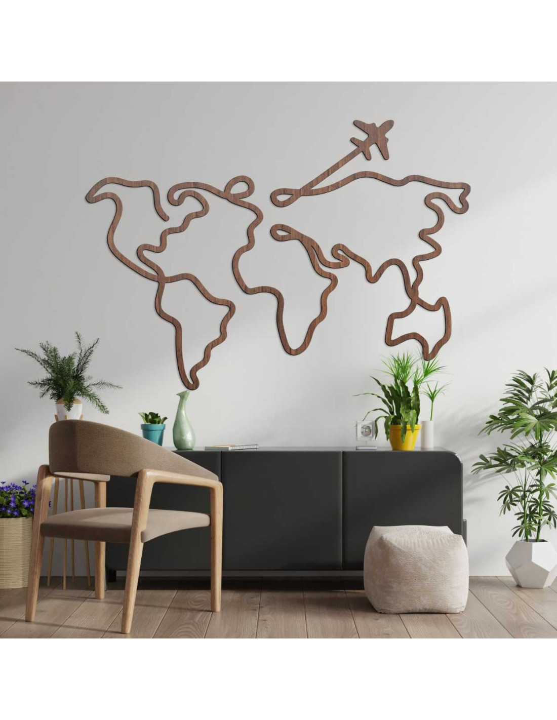 Kształt mapy świata połączony jedną, elegancką kreską stwarza wrażenie nieprzerwanej podróży .