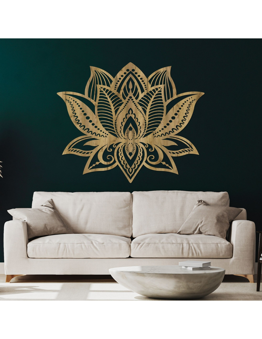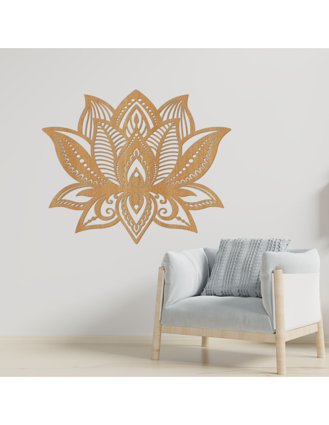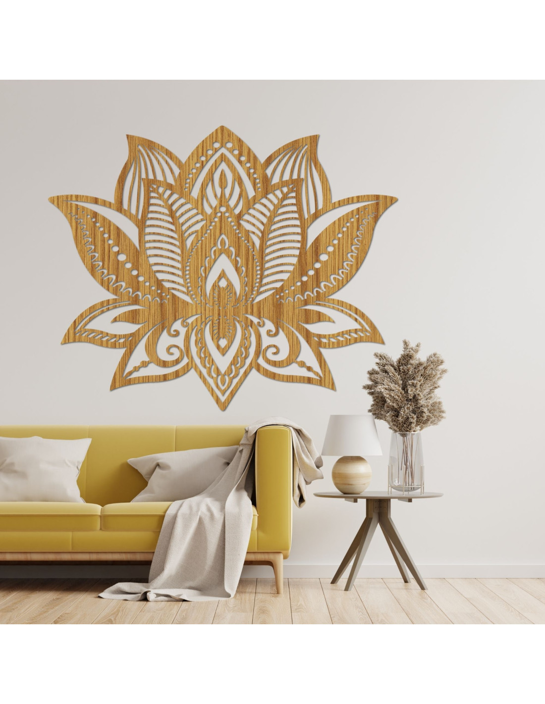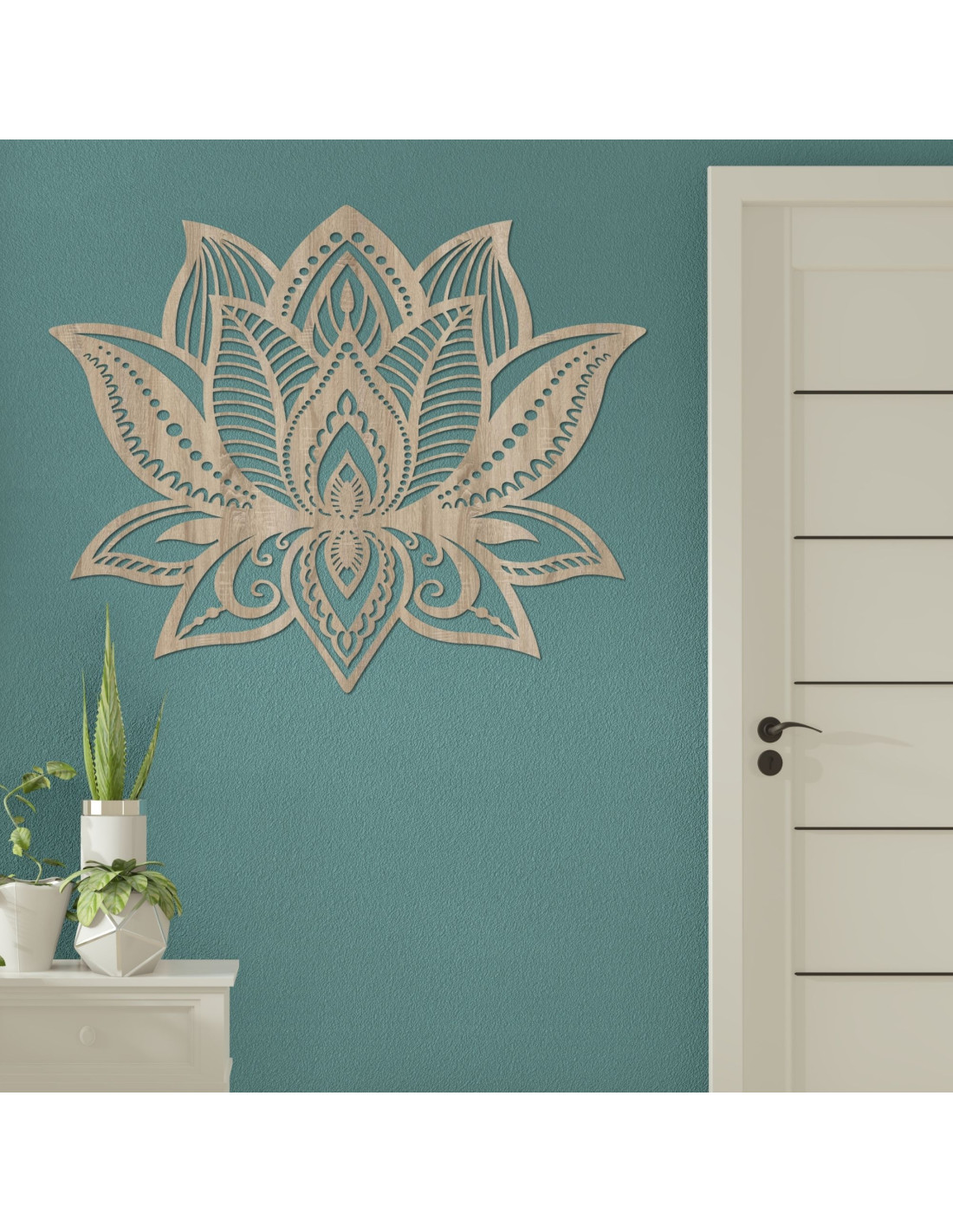 Drewniana dekoracja w kształcie kwiatu lotosu łączy w sobie estetyczną elegancję z duchową głębią.