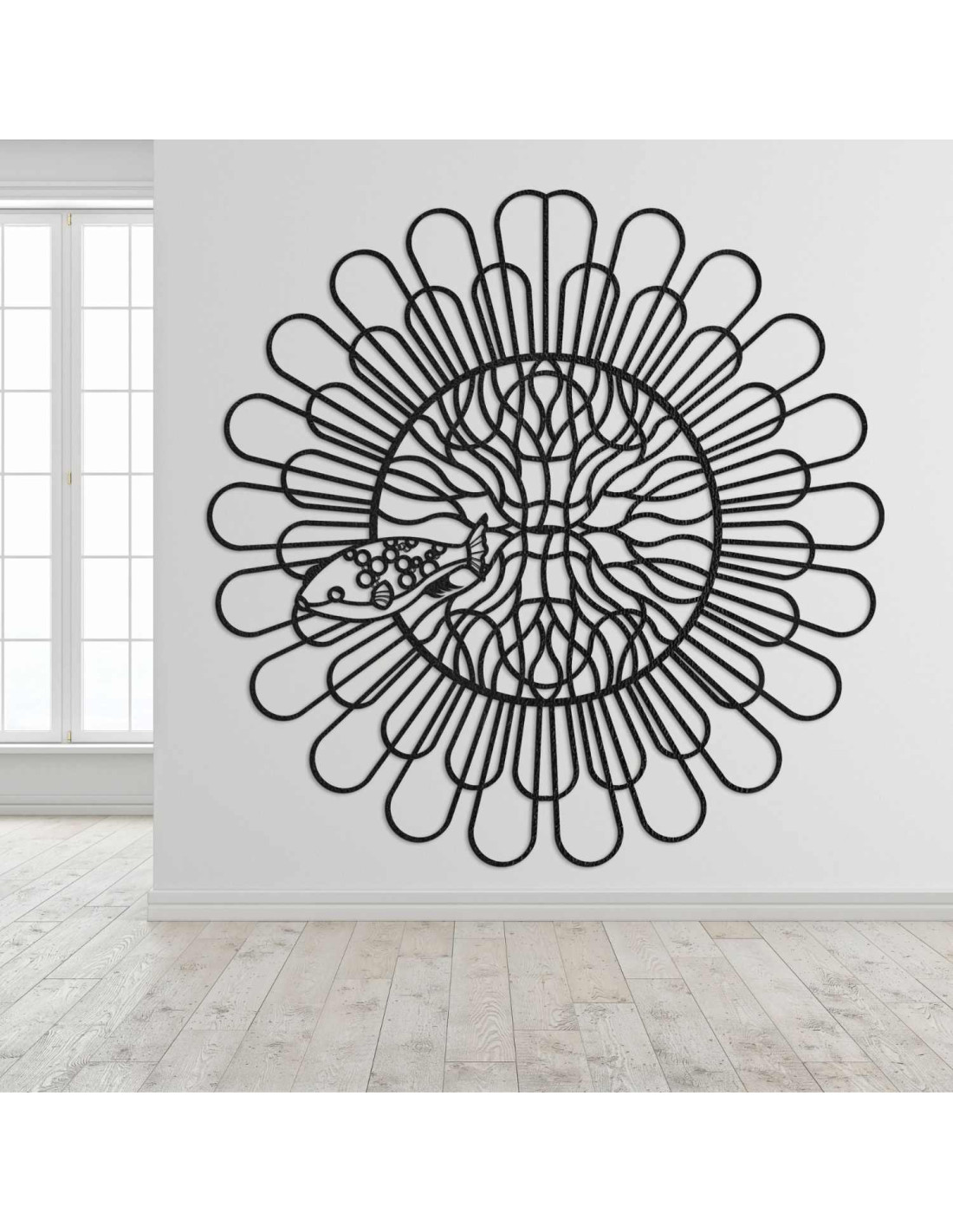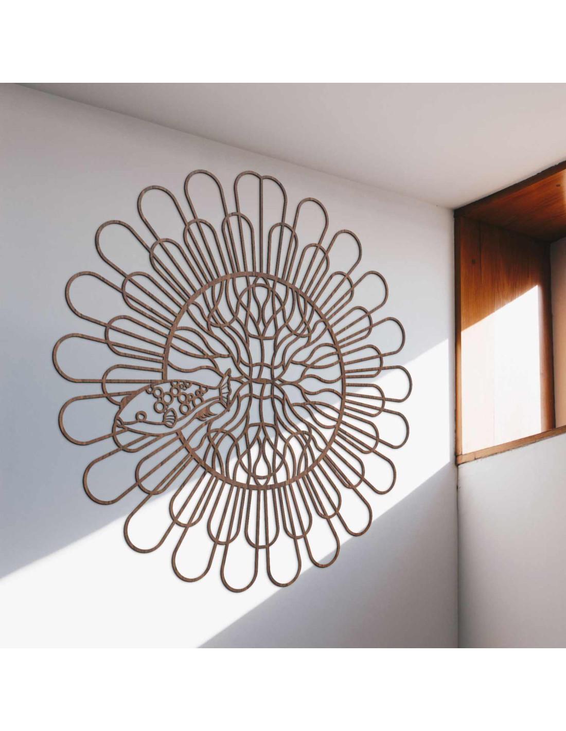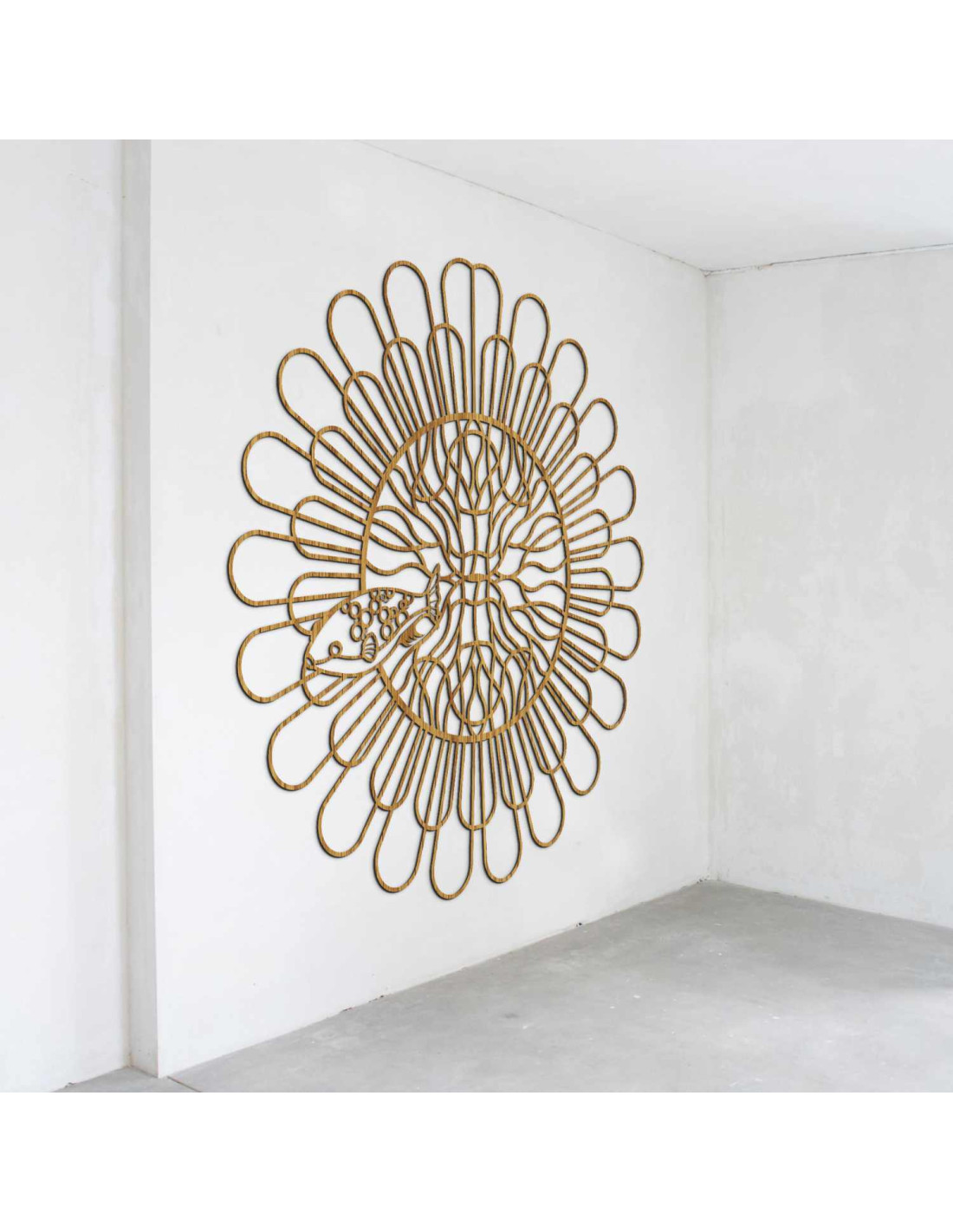 Wielkoformatowa dekoracja z misternym motywem kwiatowym, wykonana z wygiętego materiału, wprowadza do przestrzeni wrażenie ruchu i organiczności.