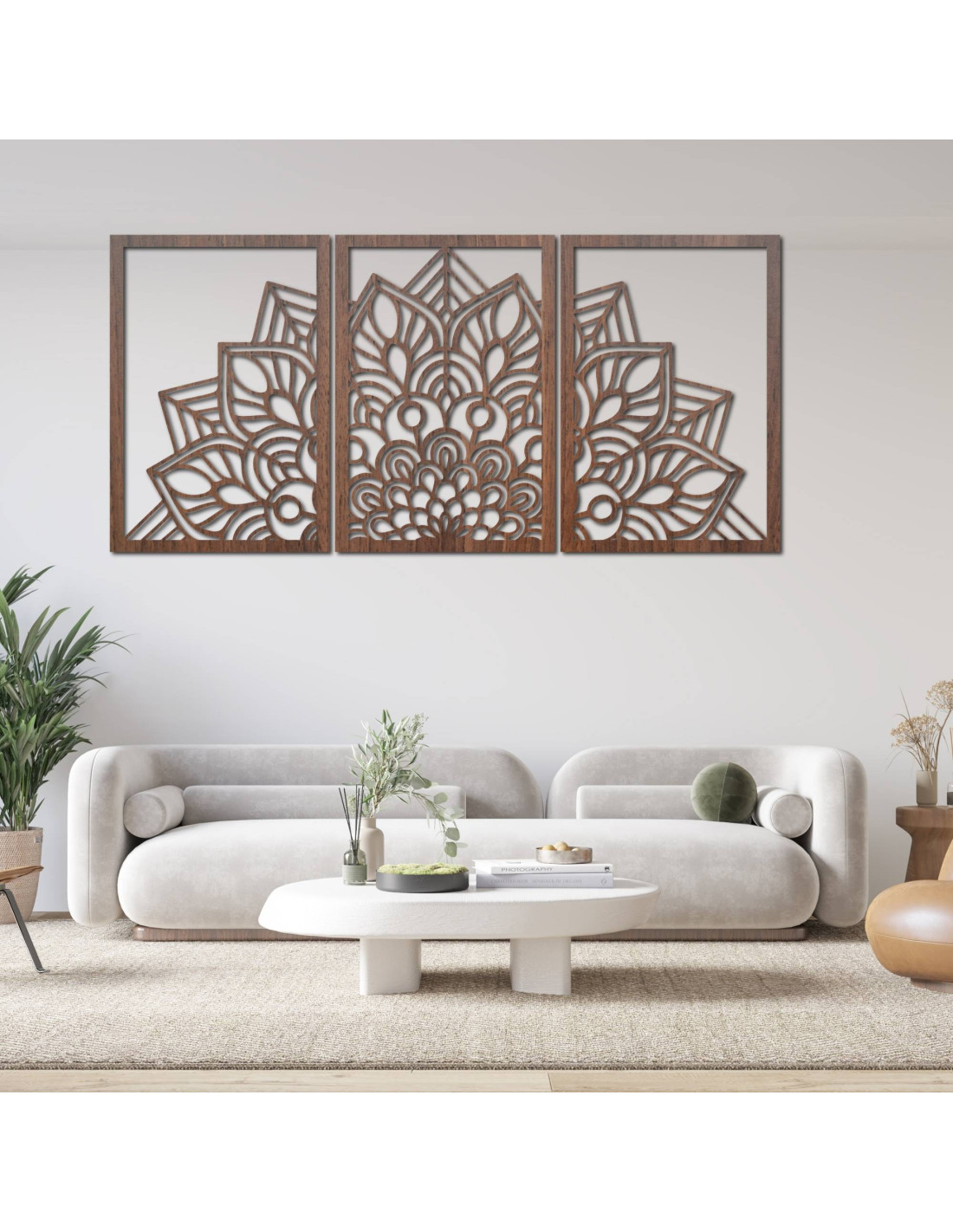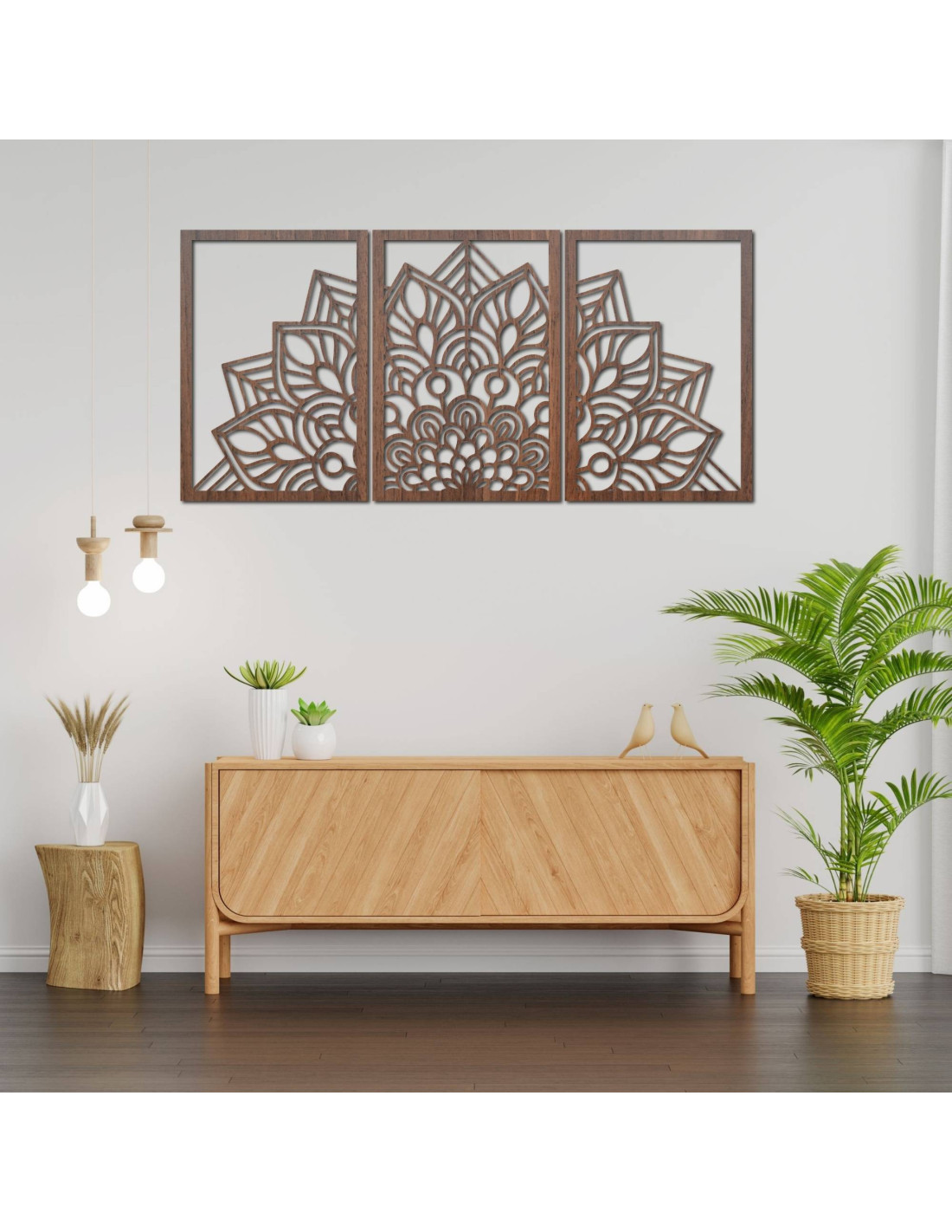 Niezależnie od tego, czy jest to artystyczny zegar ścienny w kształcie mandali kwiatu życia z zabawnymi sylwetkami ptaków, czy majestatyczna trzyczęściowa mandala , elementy te dzięki precyzyjnemu rzeźbieniu wizualnie otwierają i powiększają przestrzeń.