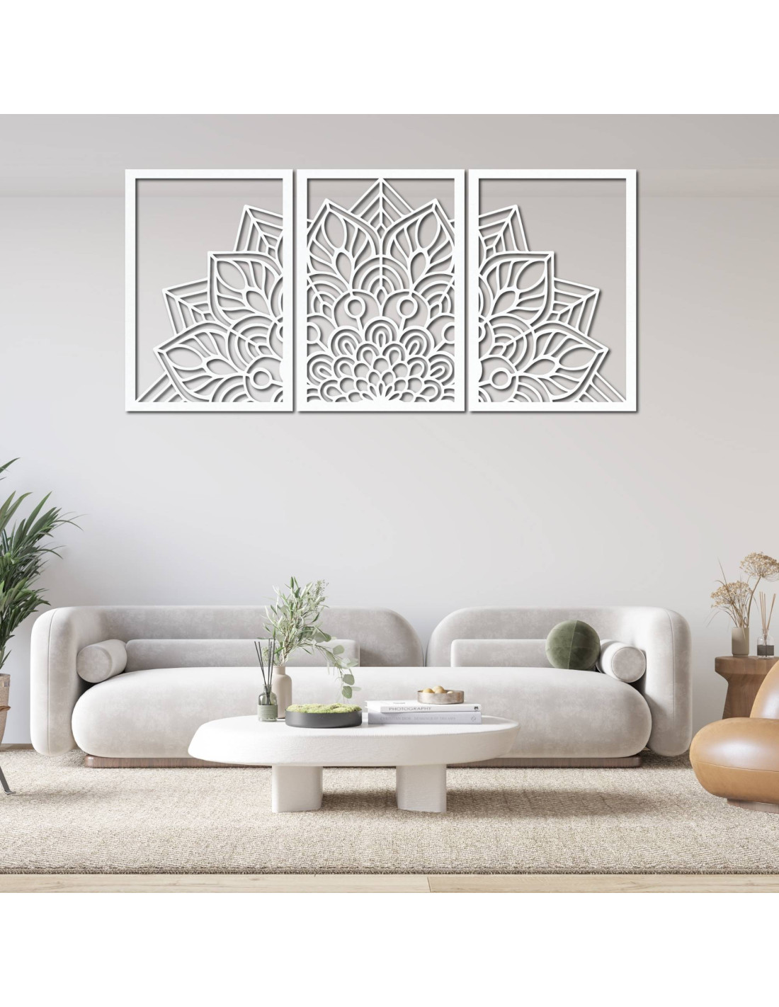 Elegancka, 3-częściowa mandala kwiatowa do Twojego salonu – nowoczesny design