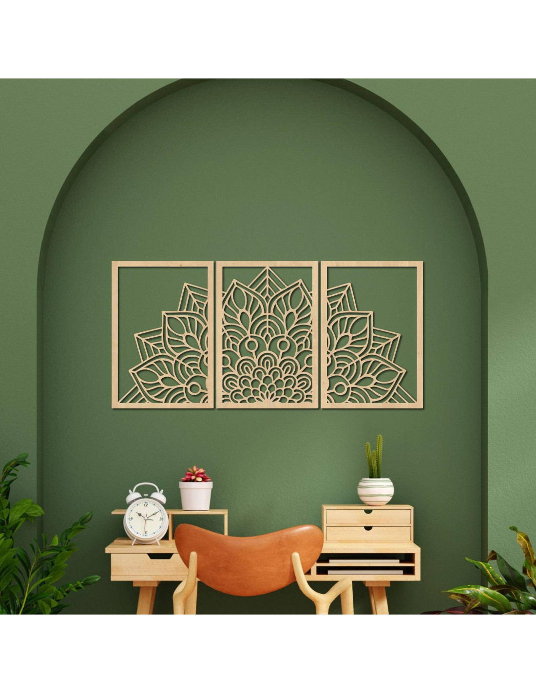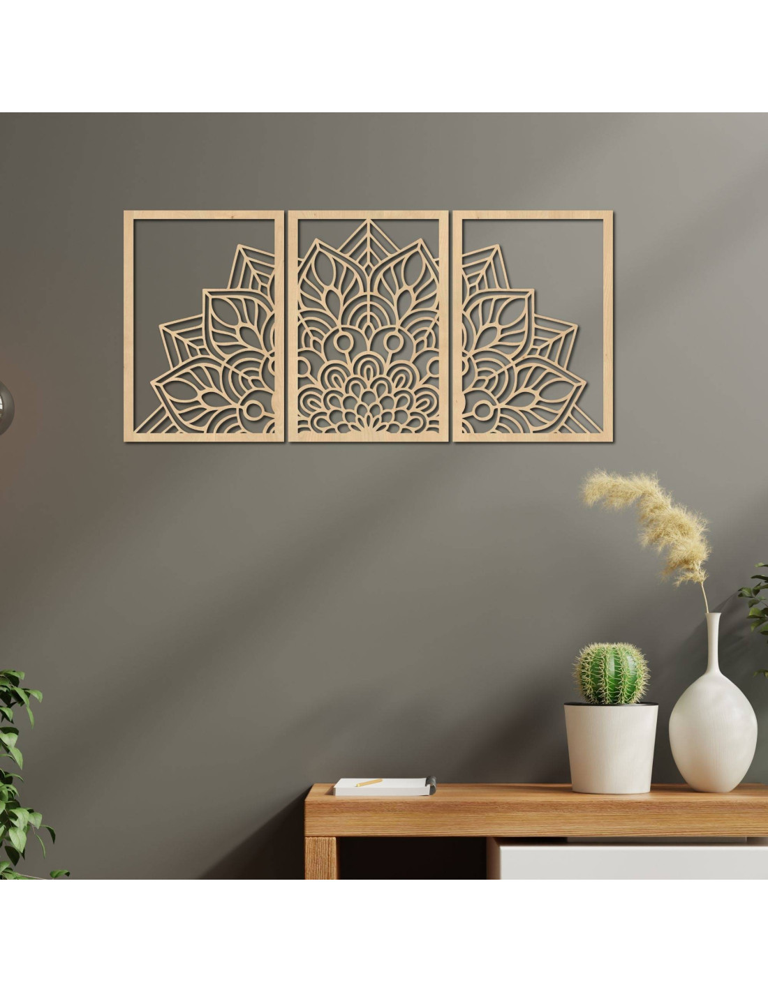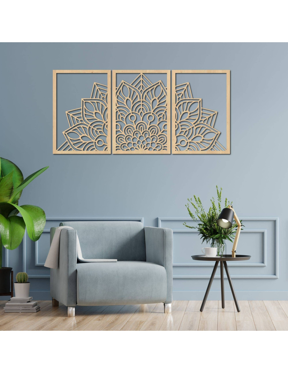 Niezależnie od tego, czy jest to artystyczny zegar ścienny w kształcie mandali kwiatu życia z zabawnymi sylwetkami ptaków, czy majestatyczna trzyczęściowa mandala , elementy te dzięki precyzyjnemu rzeźbieniu wizualnie otwierają i powiększają przestrzeń.
