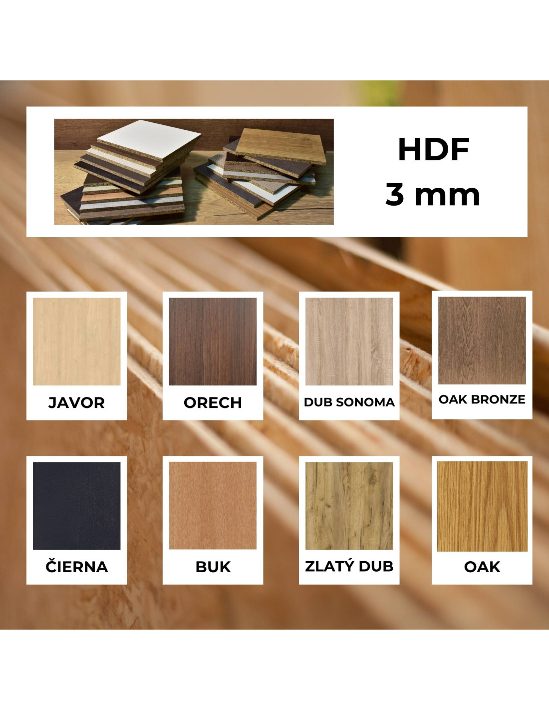 • Sklejka ma naturalną strukturę drewna / HDF ma gładką dekoracyjną powierzchnię.