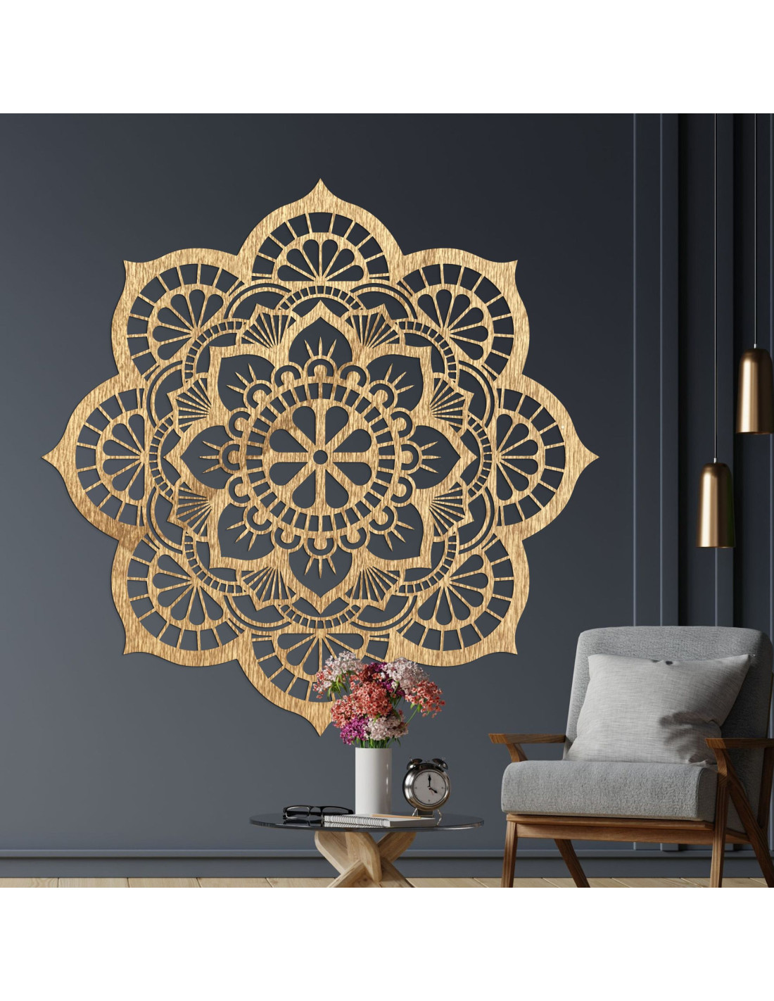 Drewniana dekoracja ścienna z symboliką mandali – kwiat lotosu – MYSTICA
