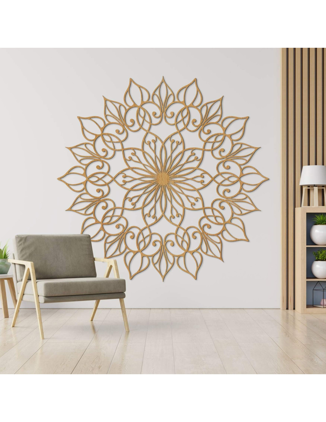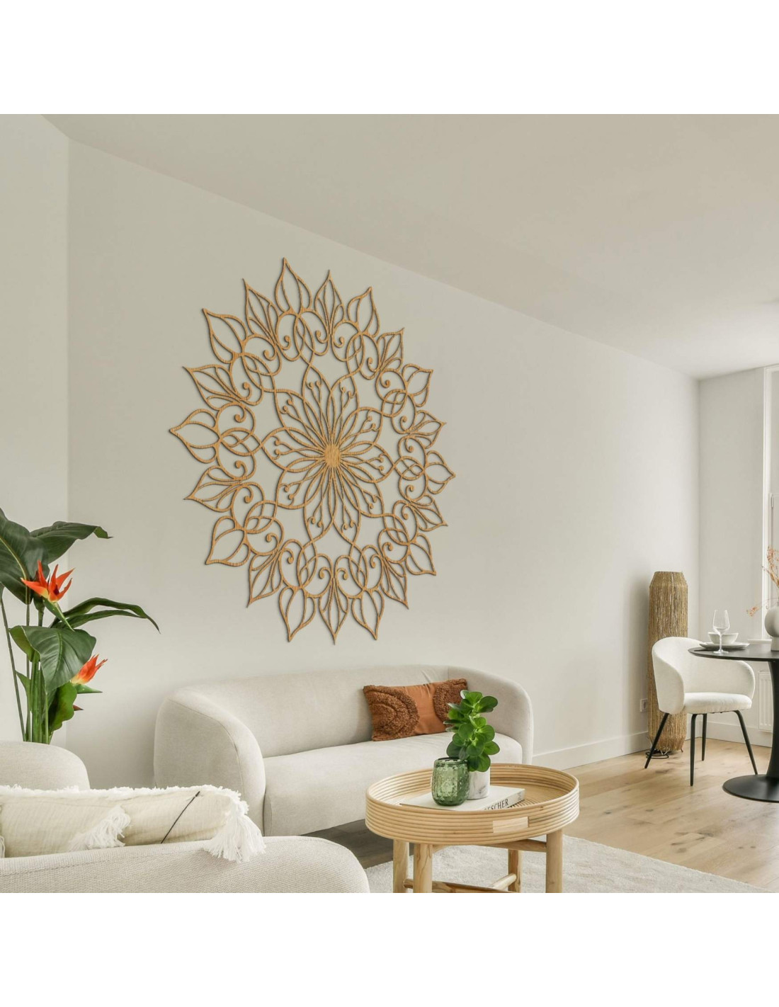 Mandala ma harmonijny charakter i tworzy spokojną, zrównoważoną atmosferę , idealną zarówno do nowoczesnych, jak i minimalistycznych przestrzeni.