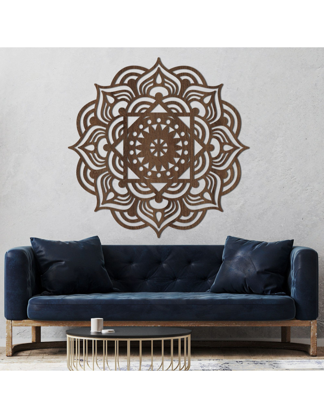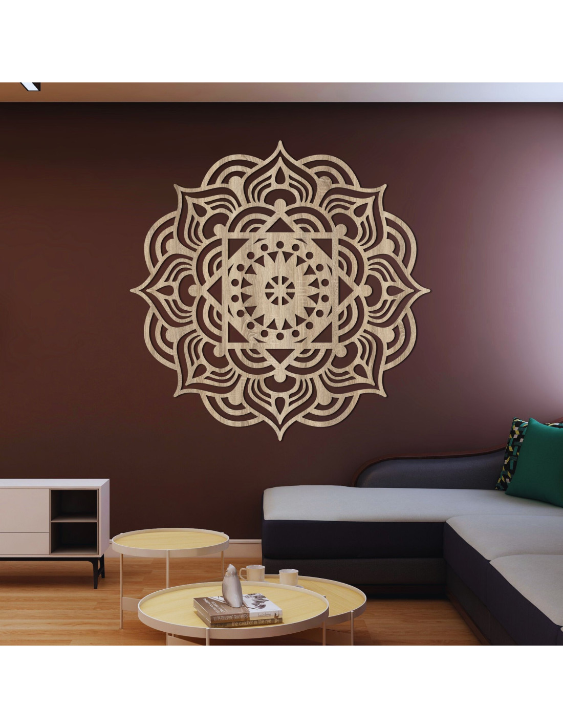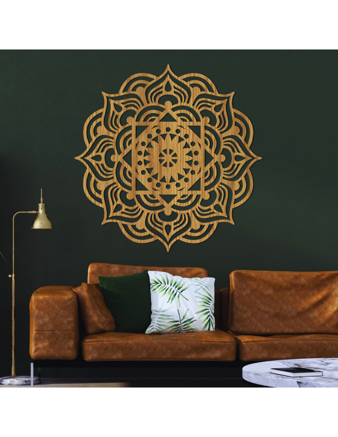 Drewniana mandala SYMMETRIA to wyjątkowa dekoracja ścienna łącząca elegancki wygląd z harmonijną konstrukcją.