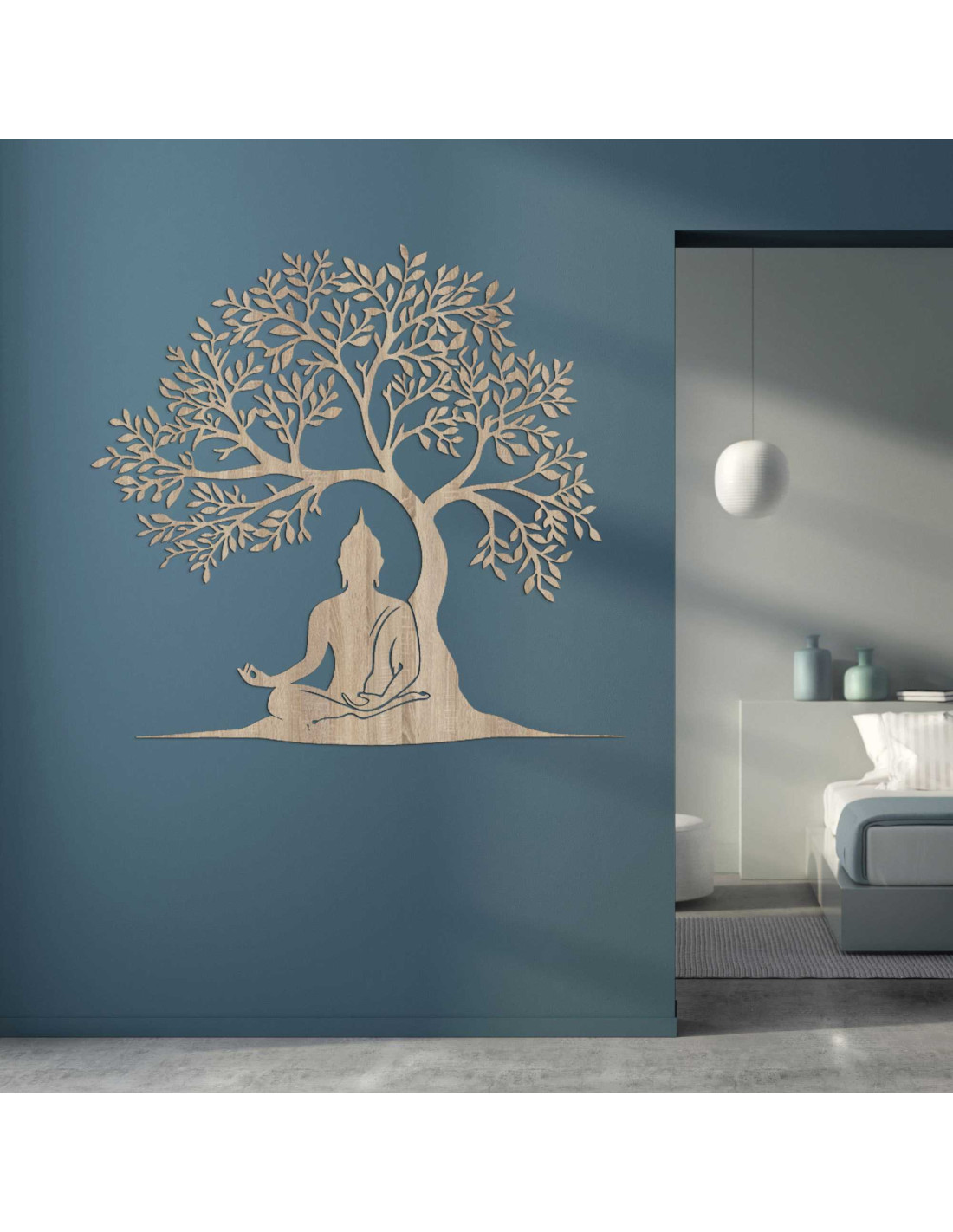 Drewniany obraz przedstawiający drzewo życia i Buddę - MOTERO