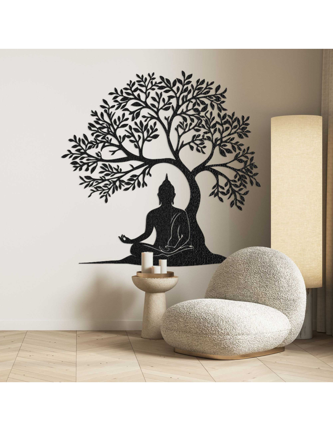 Projekt łączy przesłanie mądrości i naturalnej harmonii w jedną artystyczną kompozycję . Budda w pozycji lotosu pod drzewem symbolizuje osiągnięcie oświecenia . Dekoracja ma na celu stworzenie emocjonalnej atmosfery bez użycia słów. Każdy element ma swój własny cel i przesłanie, które pozostaje na dłużej niż pobieżne spojrzenie .