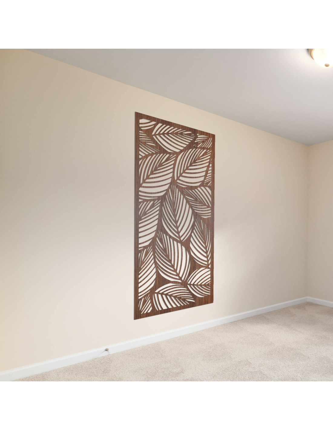 Drewniana dekoracja z motywem liścia symbolizuje wzrost, spokój i więź z naturą.