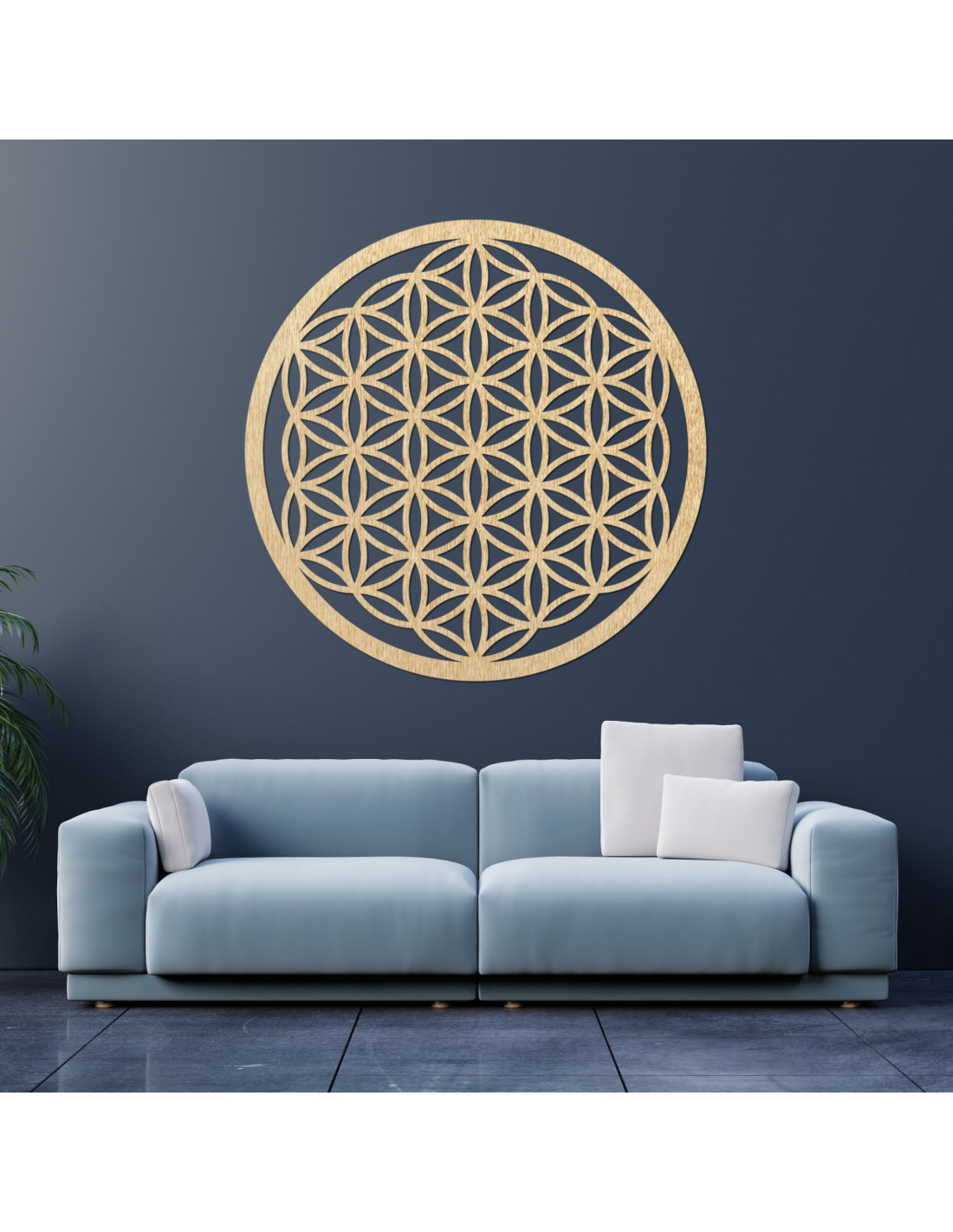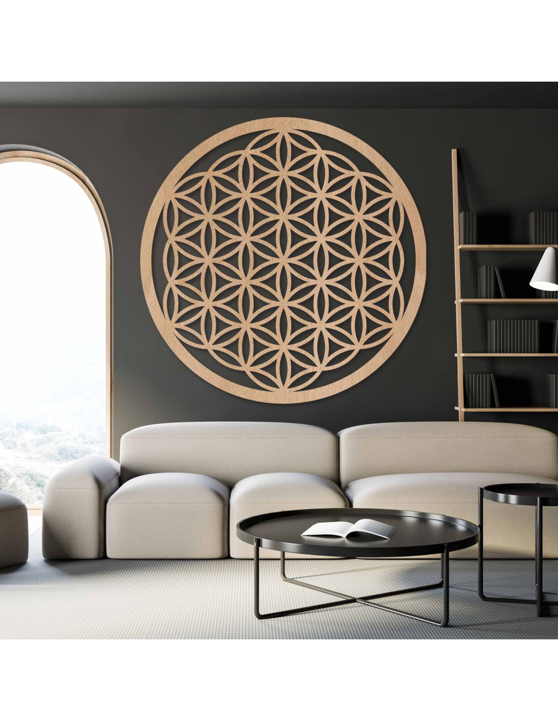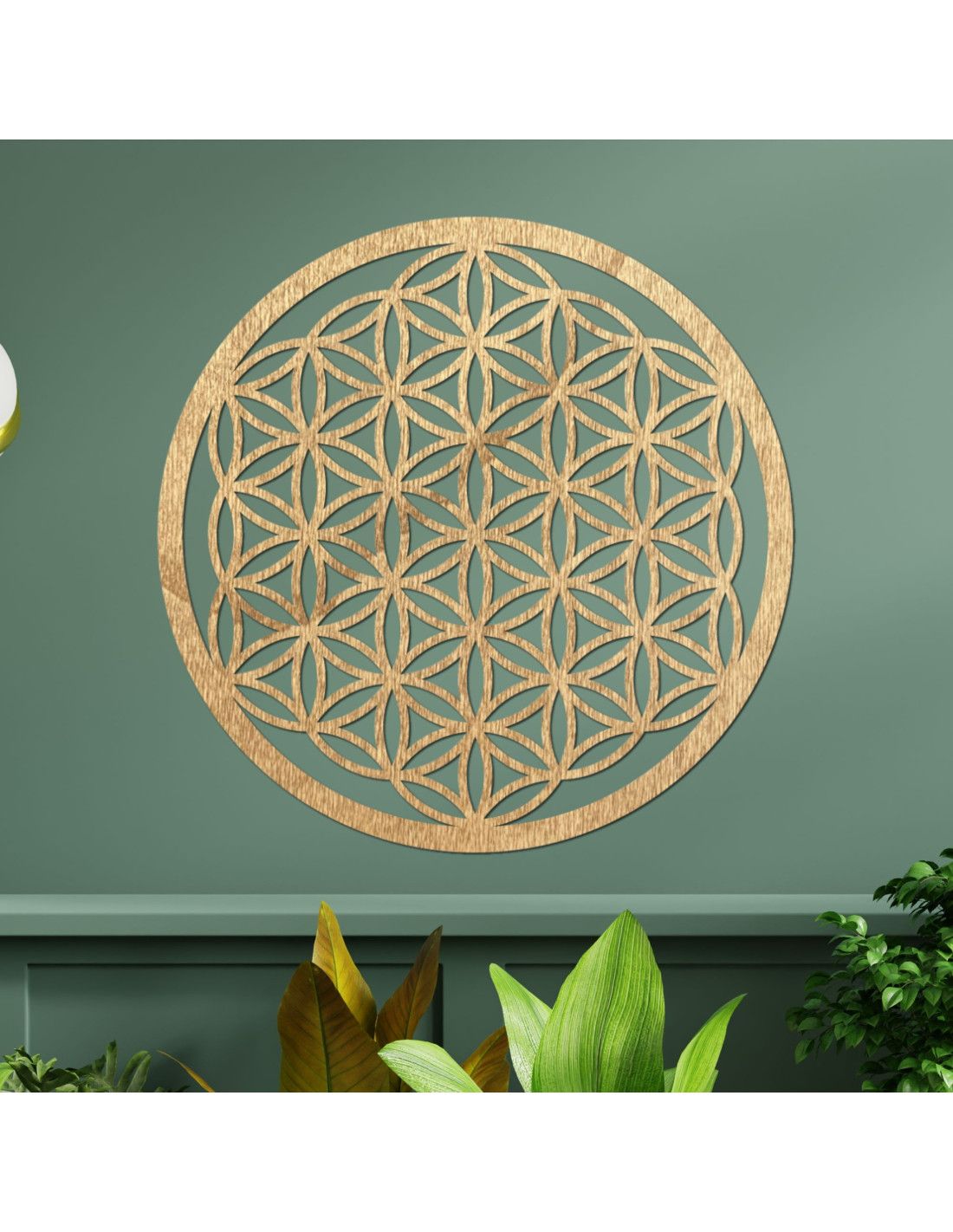 Drewniana dekoracja ścienna Kwiat Życia, mandala o świętej geometrii.