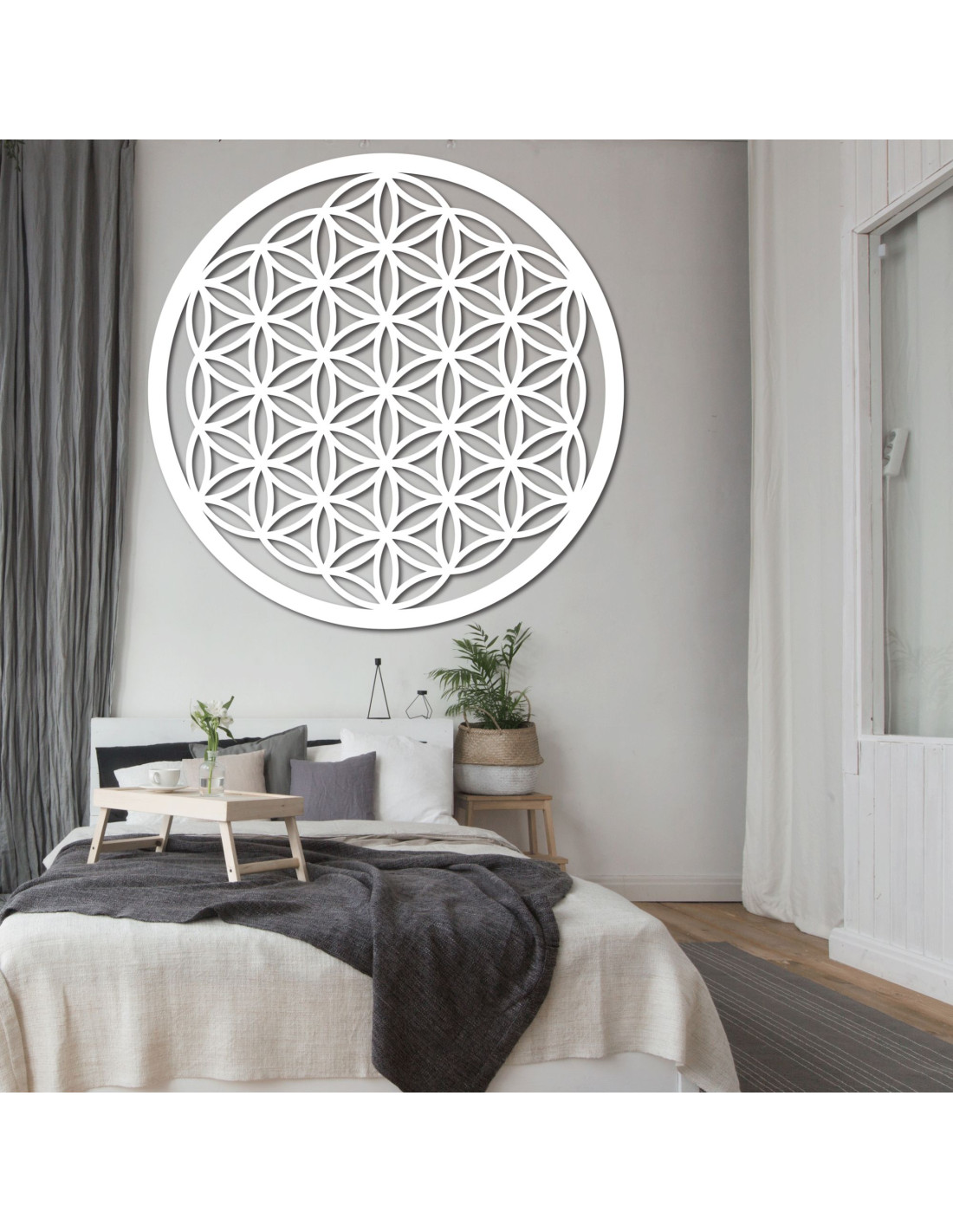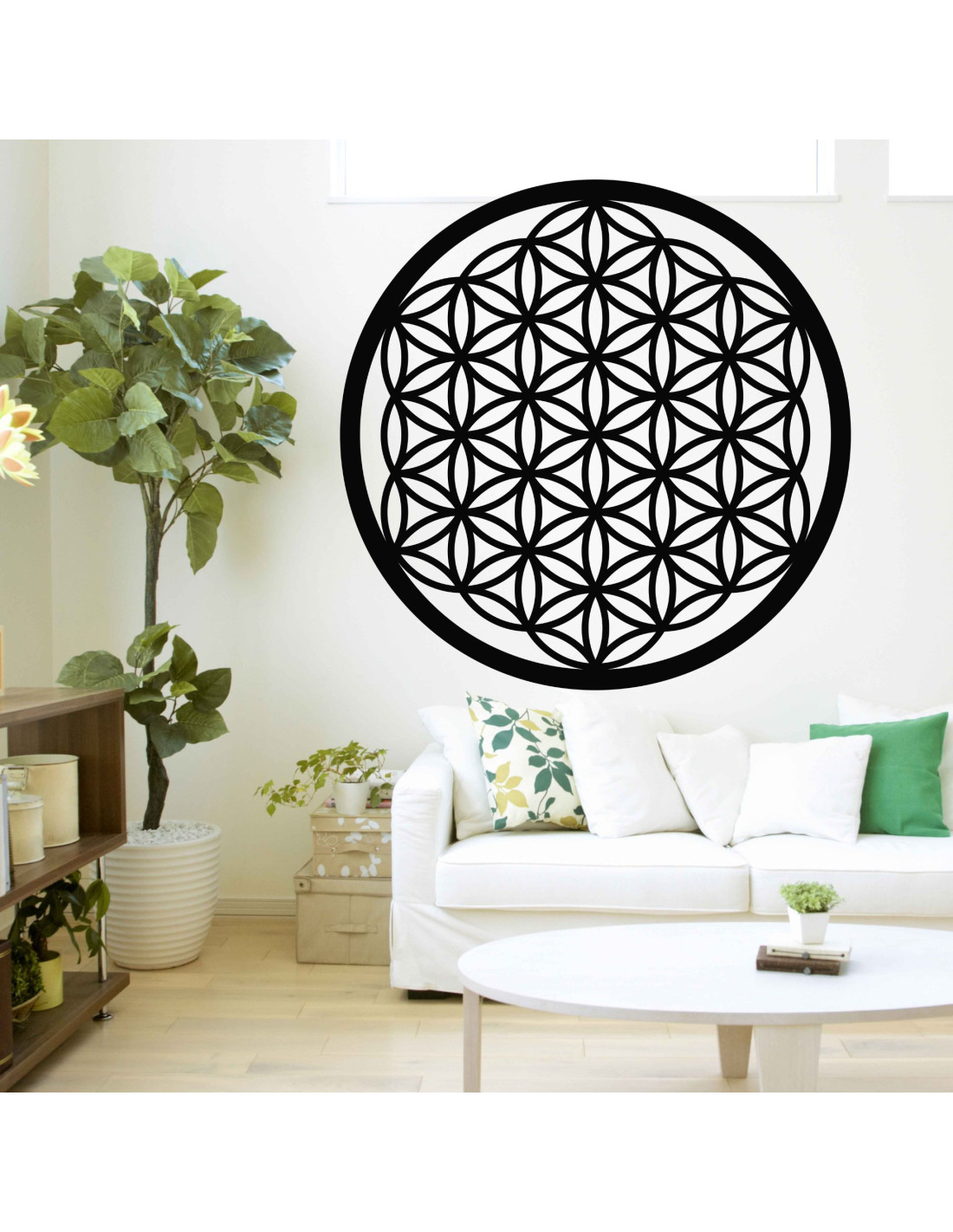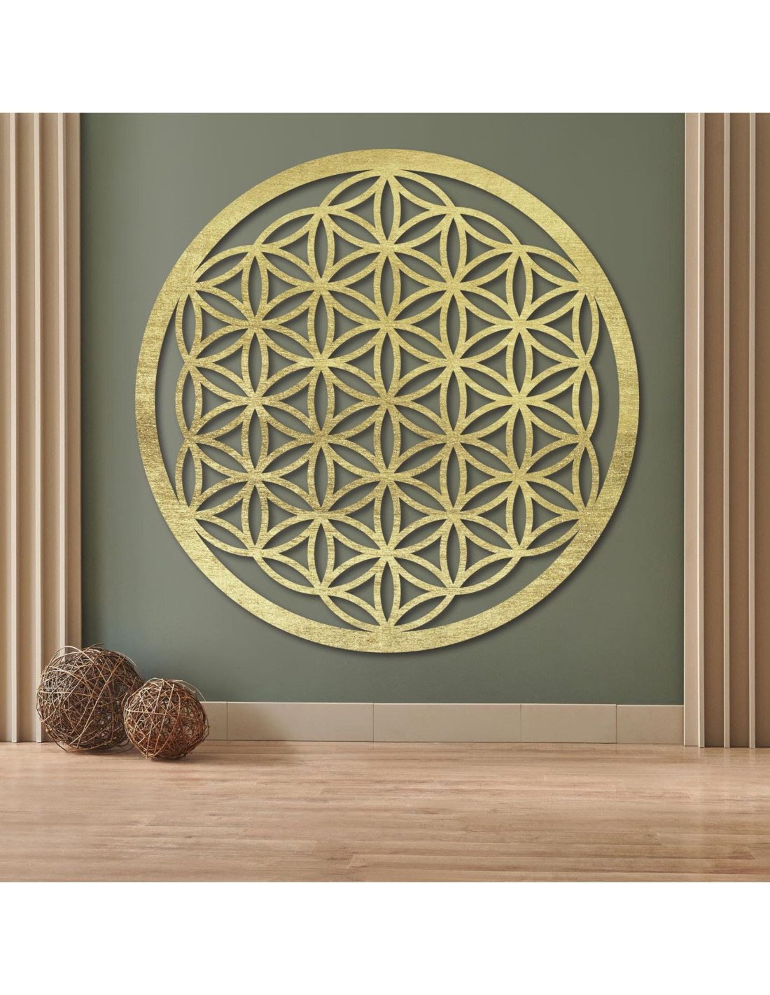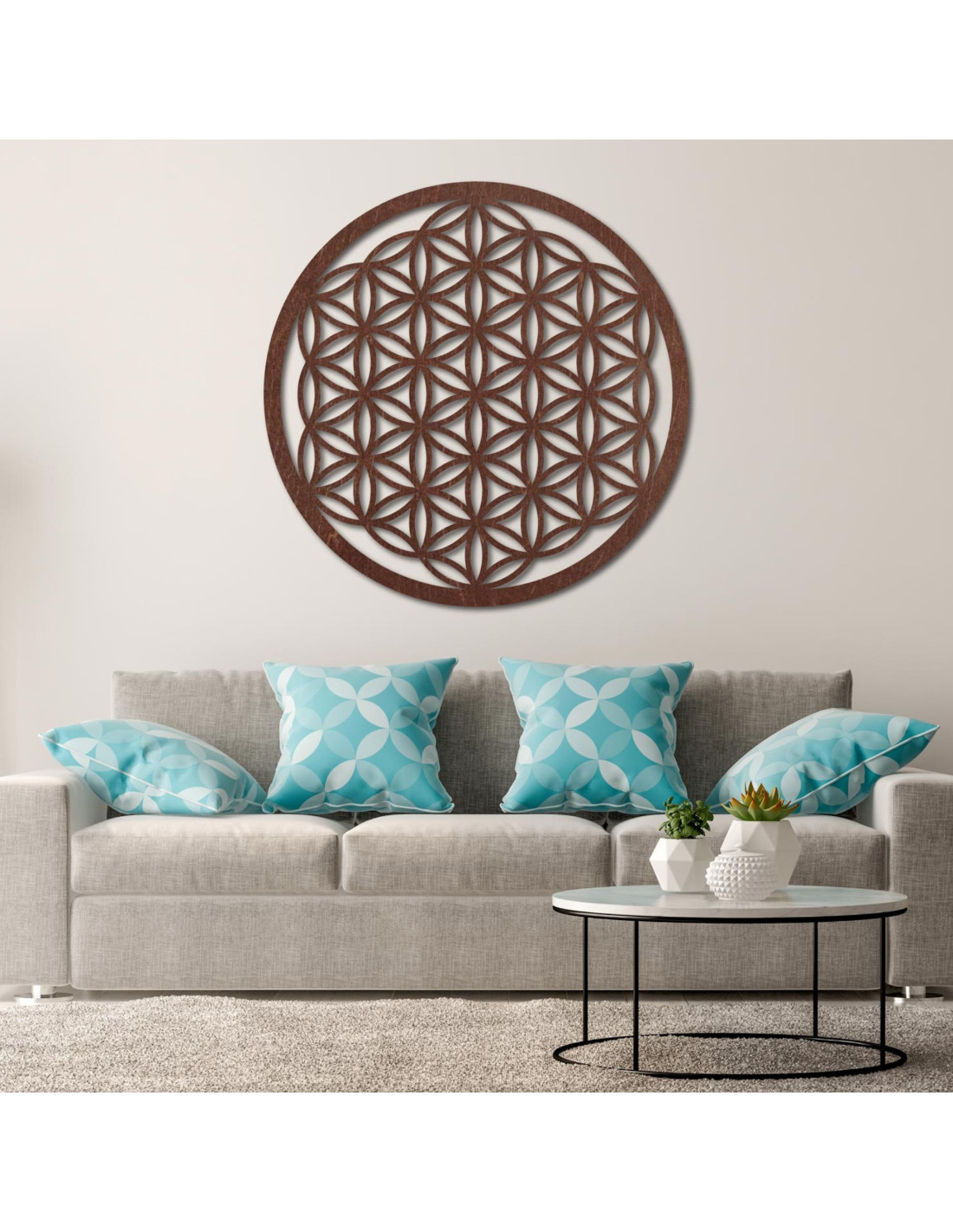 Drewniana dekoracja ścienna Kwiat Życia, mandala o świętej geometrii.