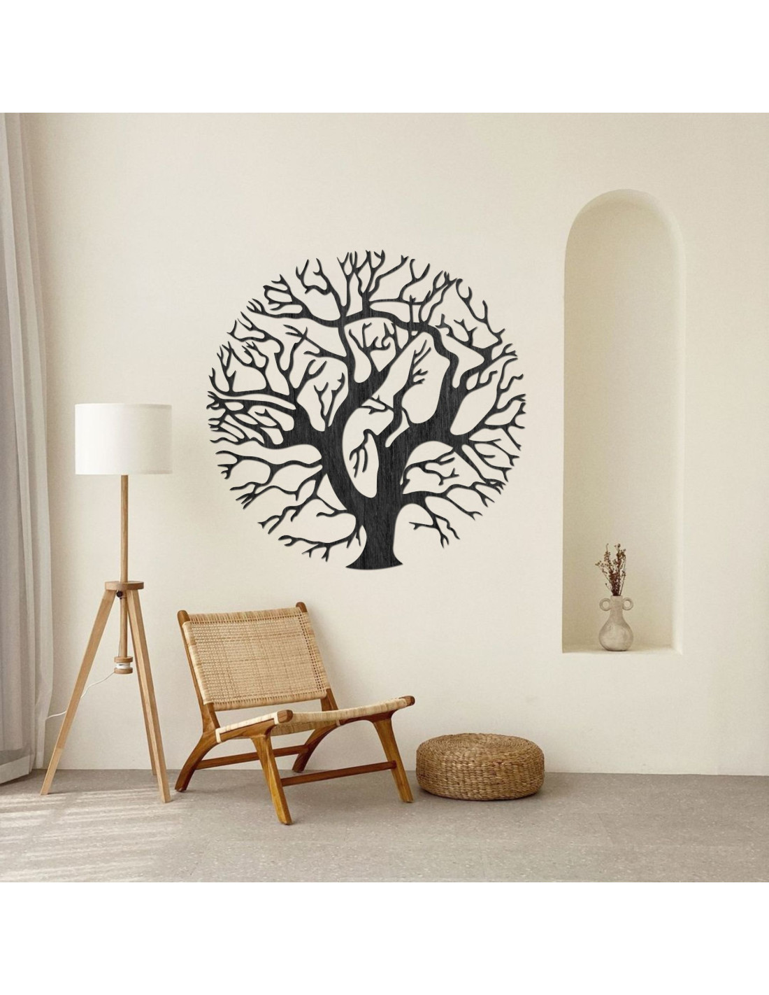 Drewniana dekoracja w kształcie drzewa ze starannie wyrzeźbionymi gałęziamiwygląda elegancko i ponadczasowo. Drobne detale tworzą przewiewny i harmonijny design. Drzewo życia symbolizuje siłę, wzrost i wzajemne powiązania.