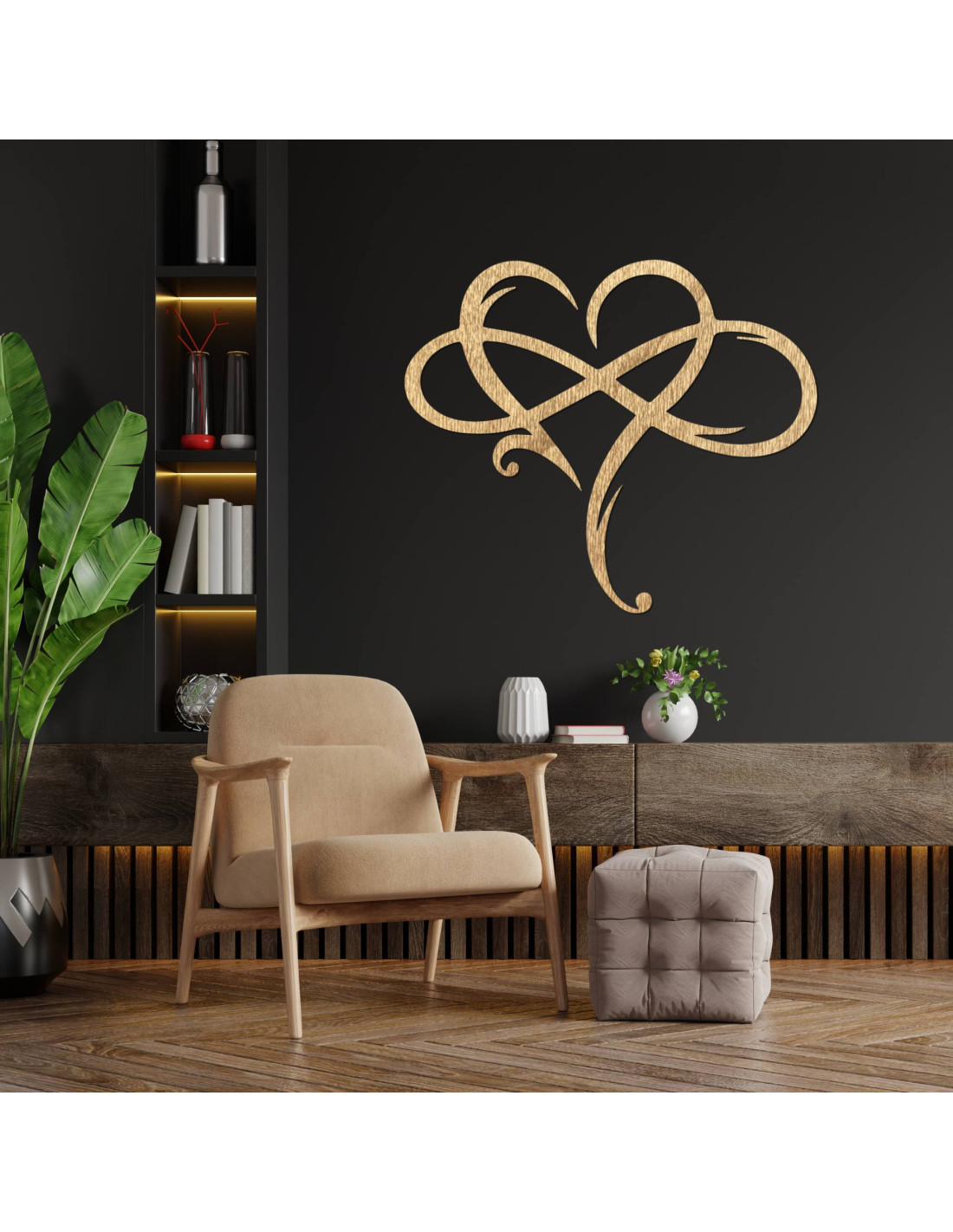 Wizerunek nieskończonego serca wykonany z wysokiej jakości sklejki jest symbolem wiecznej miłości i silnego związku.
