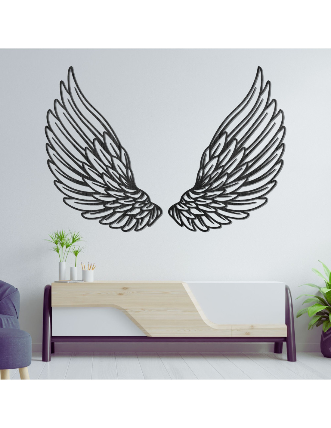Ta drewniana dekoracja ścienna w kształcie anielskich skrzydeł symbolizuje wolność, ochronę i lekkość.
