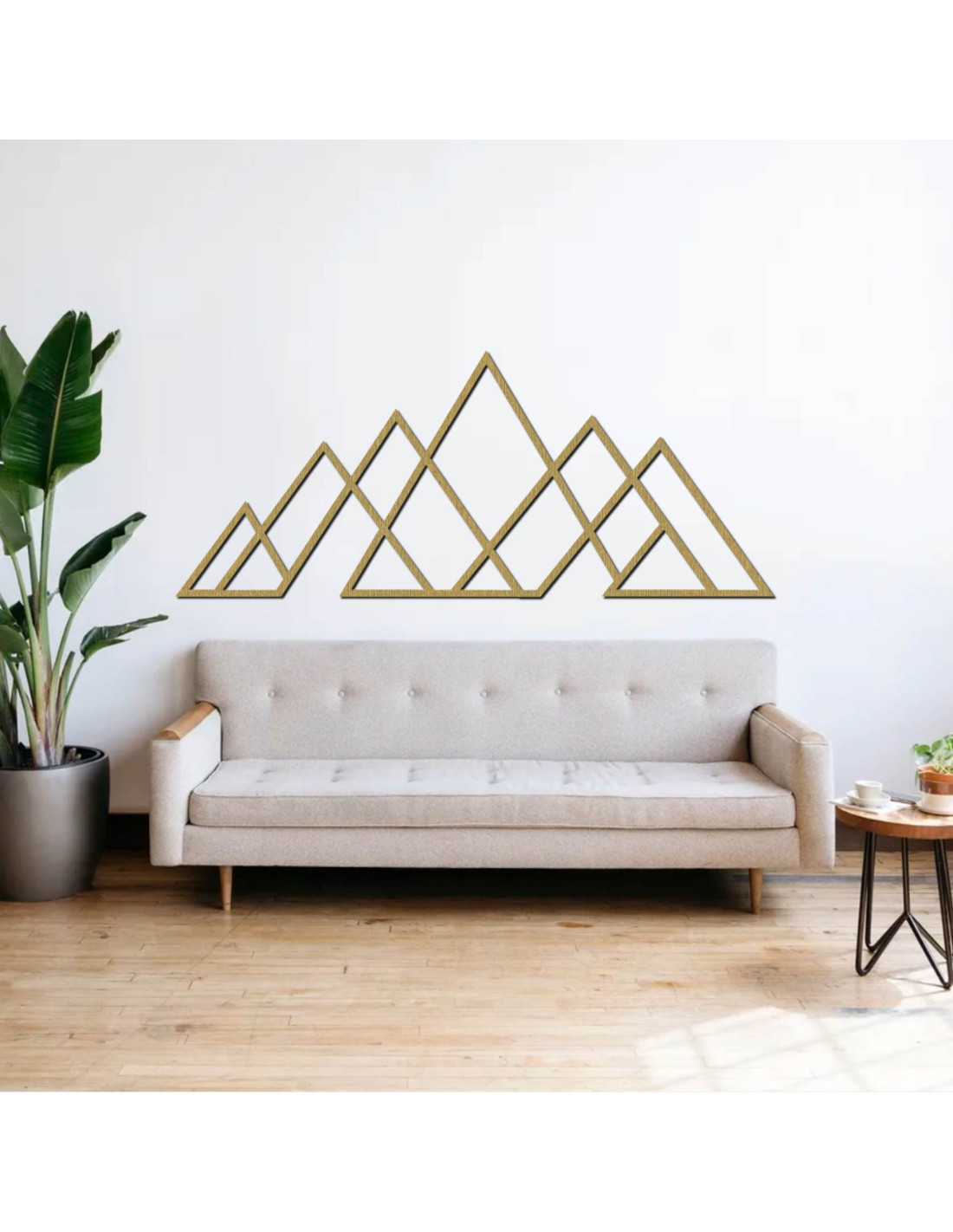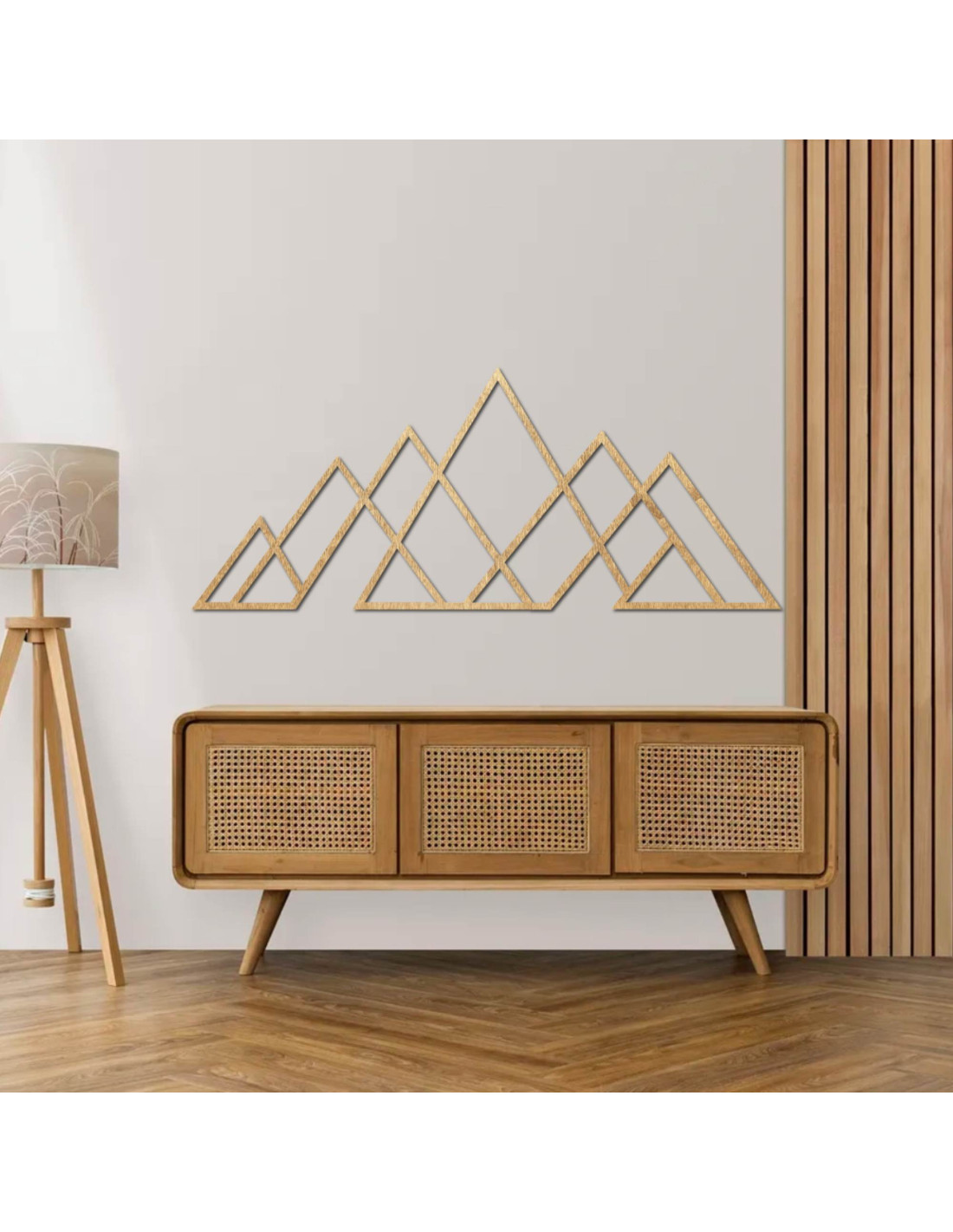 Geometryczny obraz górski - drewniana dekoracja ścienna w nowoczesnym stylu dla miłośników natury i minimalizmu.