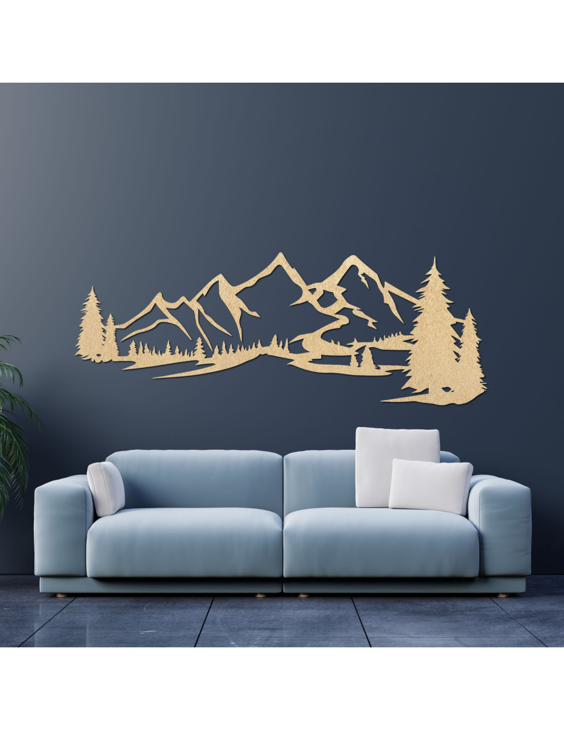 Ten górski krajobraz z drzewami iglastymi został stworzony dzięki zastosowaniu cięcia laserowego zapewniającego precyzyjne detale i starannie wykończony, aby uzyskać czysty i wyjątkowy efekt wizualny.