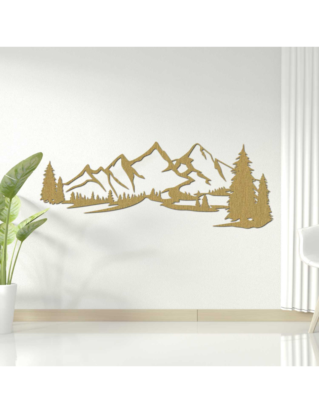 Ten górski krajobraz z drzewami iglastymi został stworzony dzięki zastosowaniu cięcia laserowego zapewniającego precyzyjne detale i starannie wykończony, aby uzyskać czysty i wyjątkowy efekt wizualny.