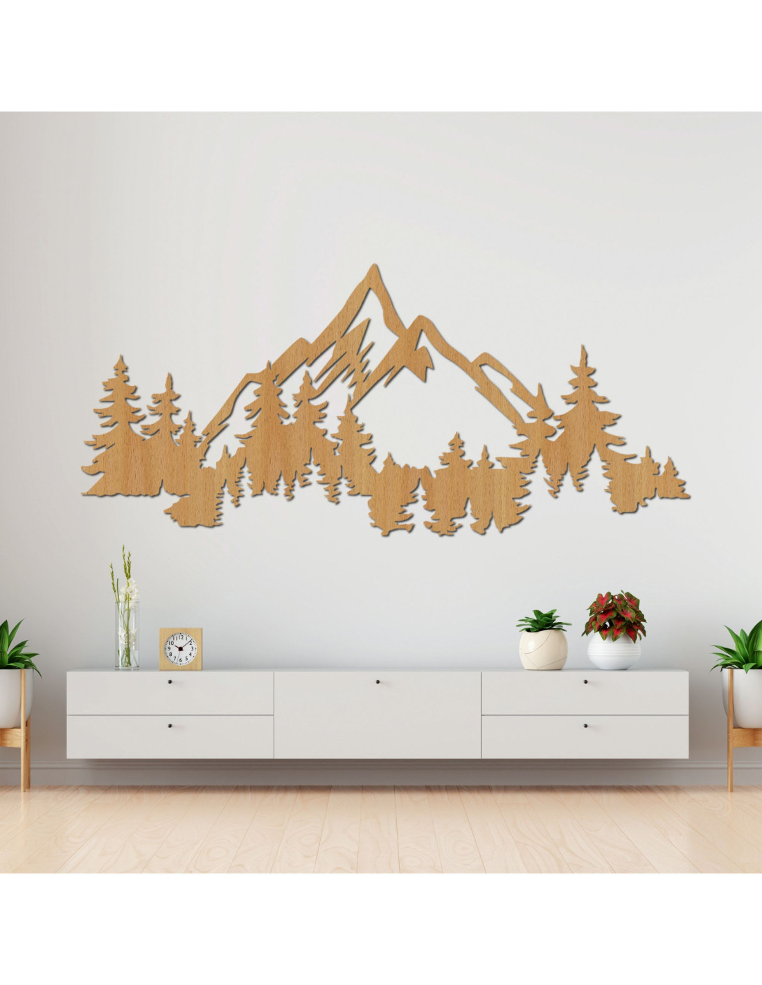 Drewniany malowidło ścienne przedstawiające górski krajobraz z lasem | SIERRAA