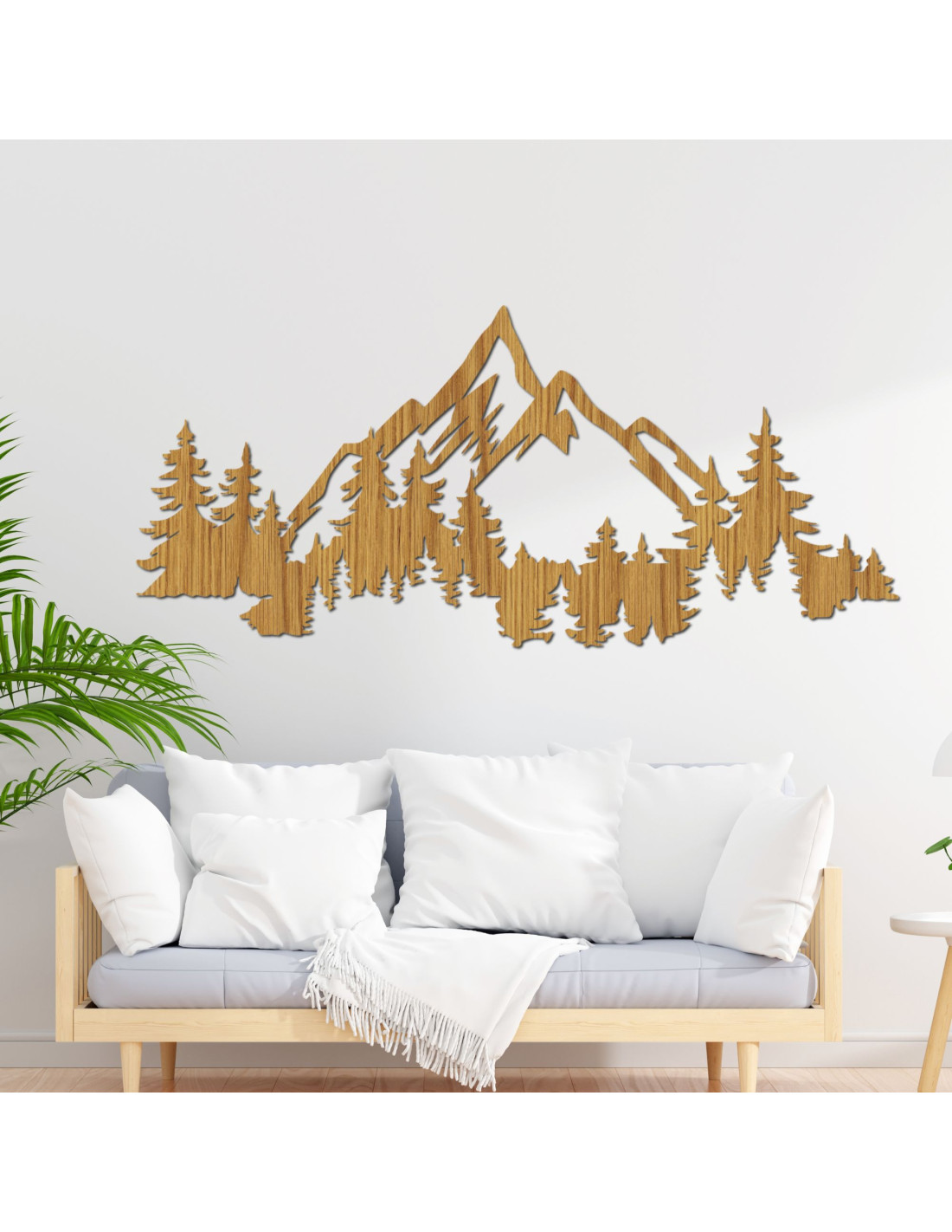 Drewniany malowidło ścienne przedstawiające górski krajobraz z lasem | SIERRAA