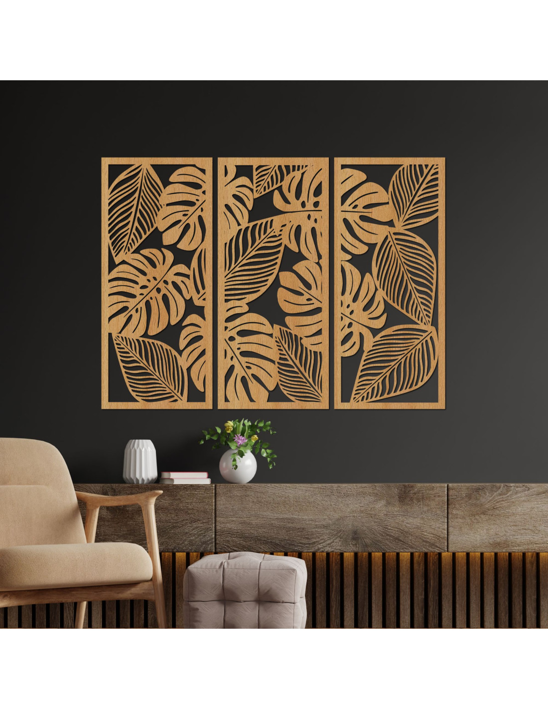 SentopWnieś życie do swojego wnętrza dzięki naszemu drewnianemu obrazowi przedstawiającemu monsterę, składającemu się z trzech części .