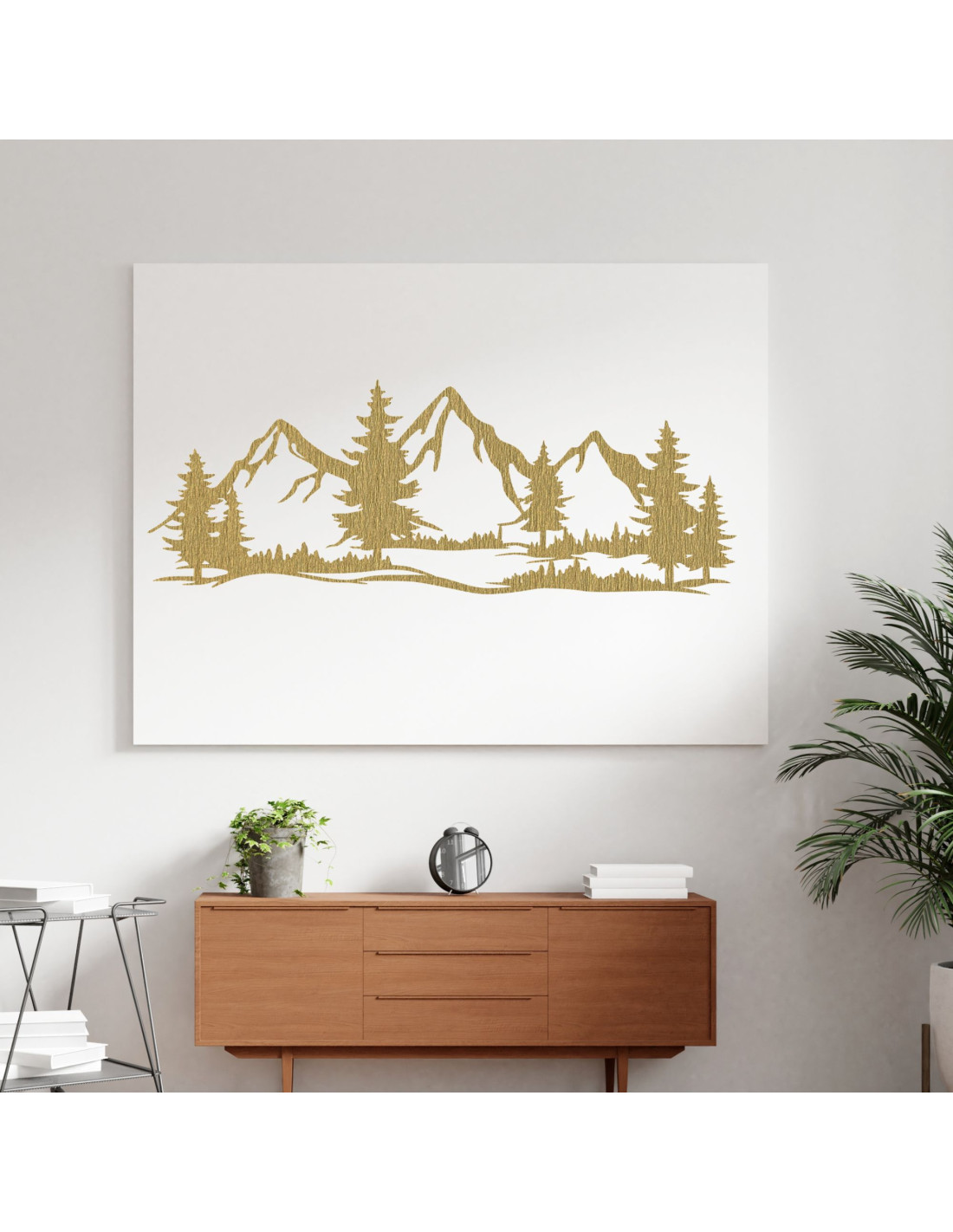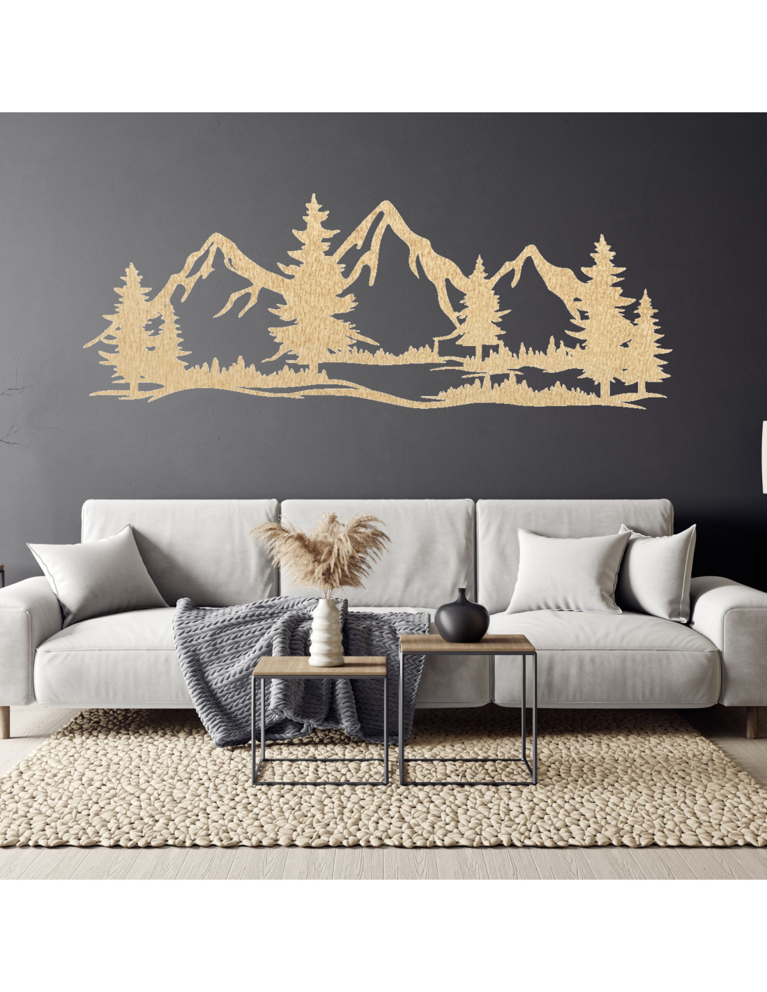 Ta drewniana dekoracja ścienna wydobywa urzekające piękno majestatycznych gór i cichych lasów, które symbolizują siłę, wolność i spokój natury. Pieczołowicie wyrzeźbione detale dodają jej głębi i niepowtarzalnego charakteru, czyniąc z niej wyjątkowy element wnętrza. To nie tylko dekoracja, ale kawałek natury, który wprowadzi harmonię do Twojego domu i poczucie połączenia z dzikim, nieokiełznanym krajobrazem.