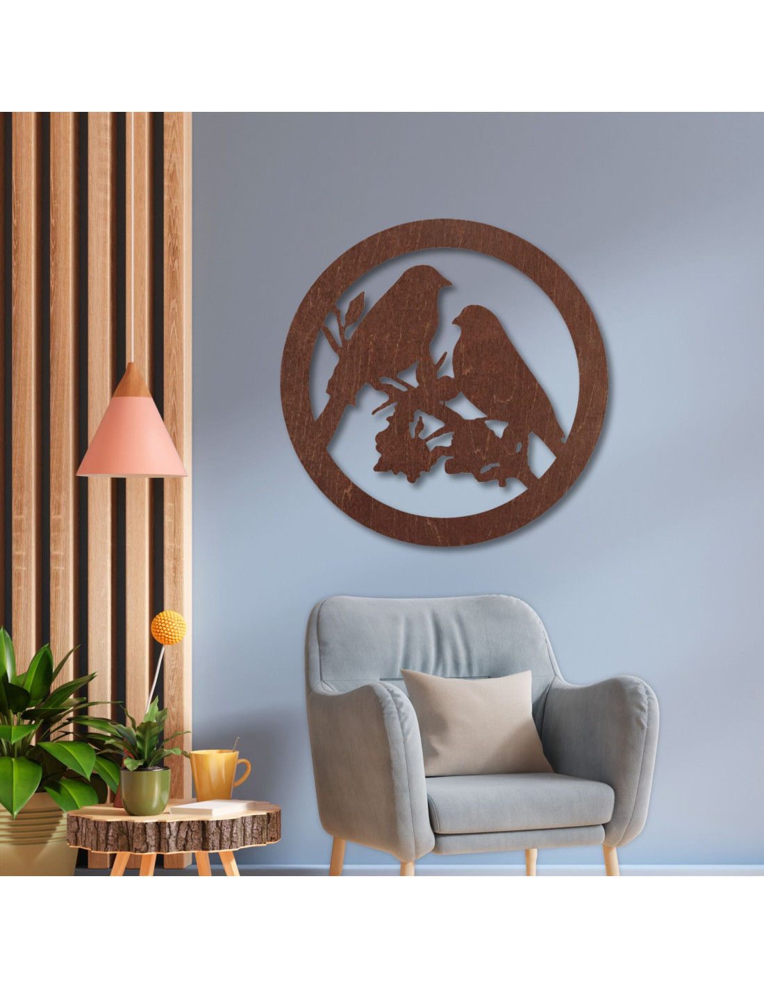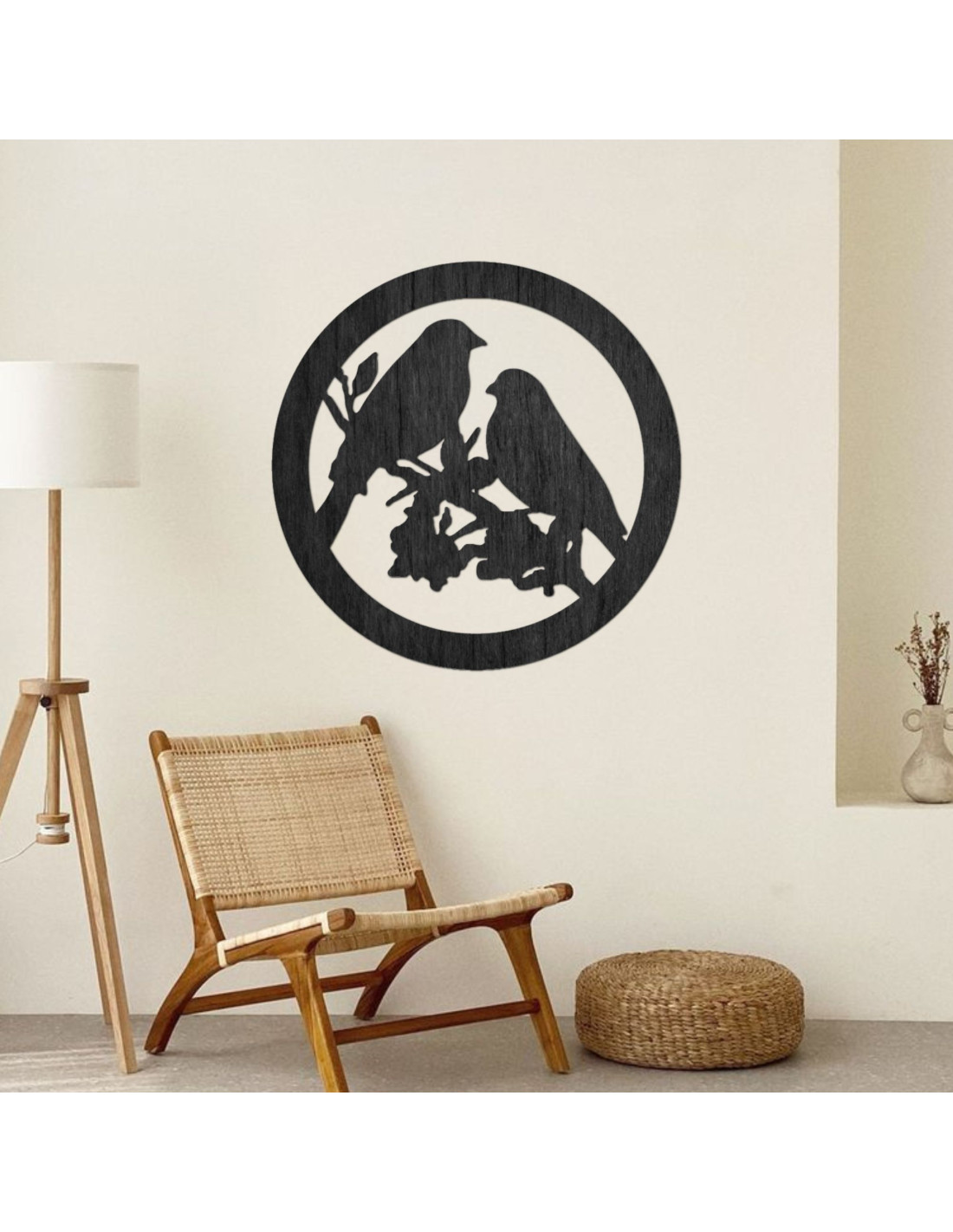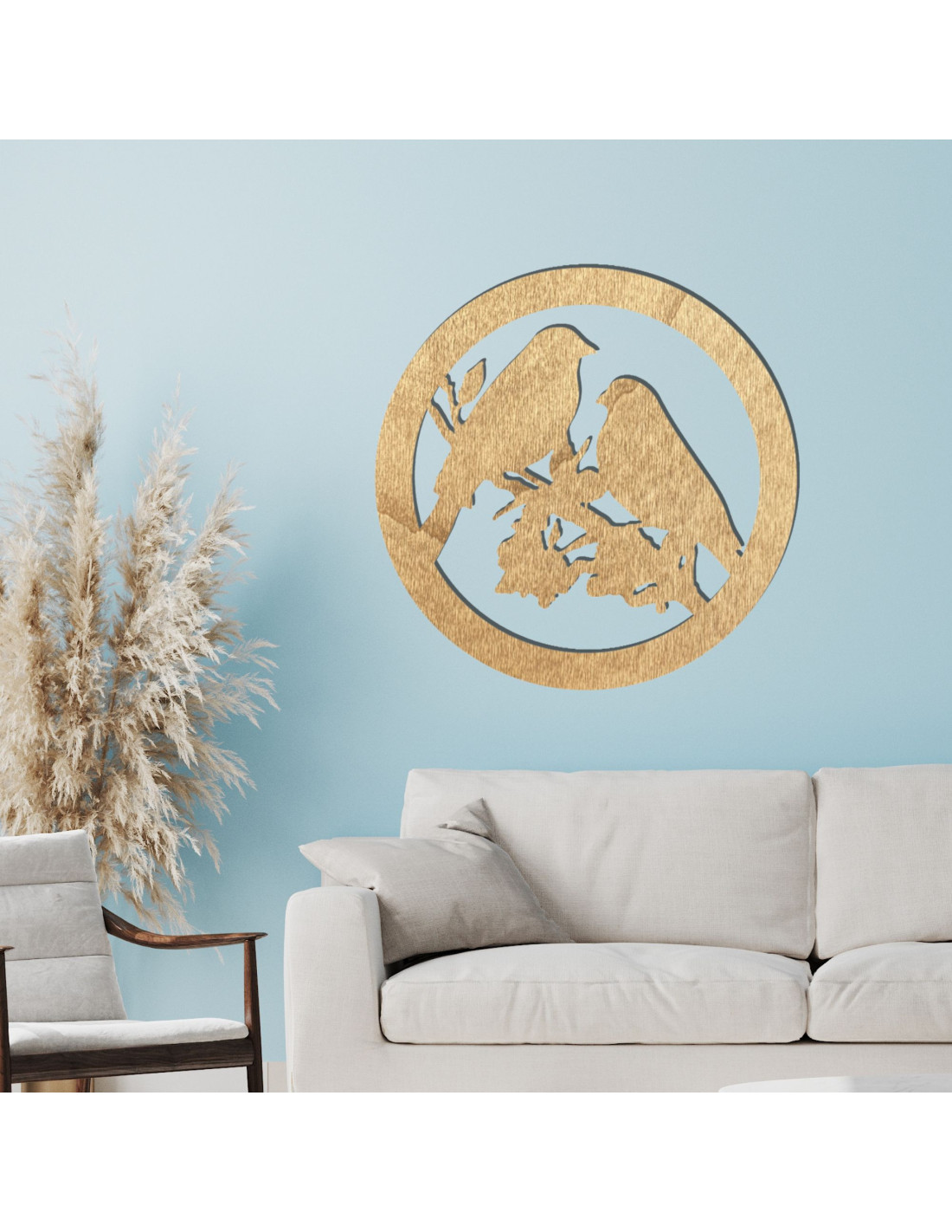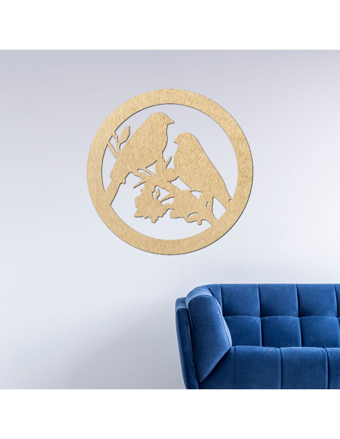 Malowidło ścienne z drewna przedstawiające ptaki na gałęzi - BIERDO
