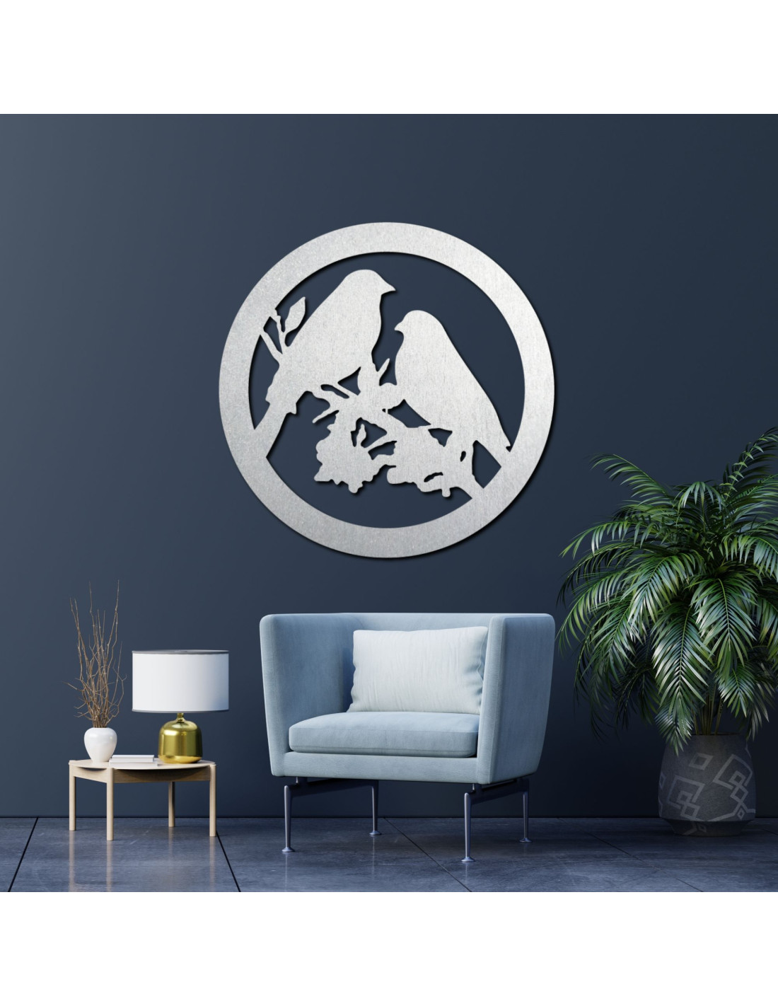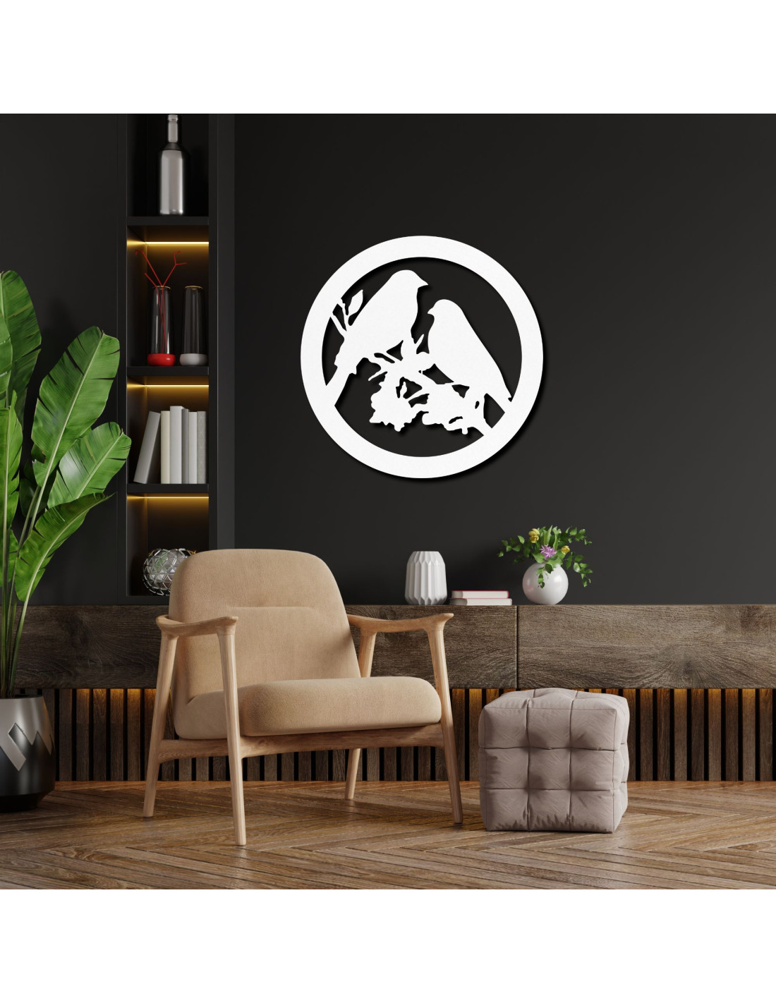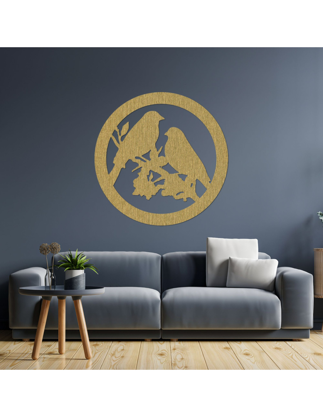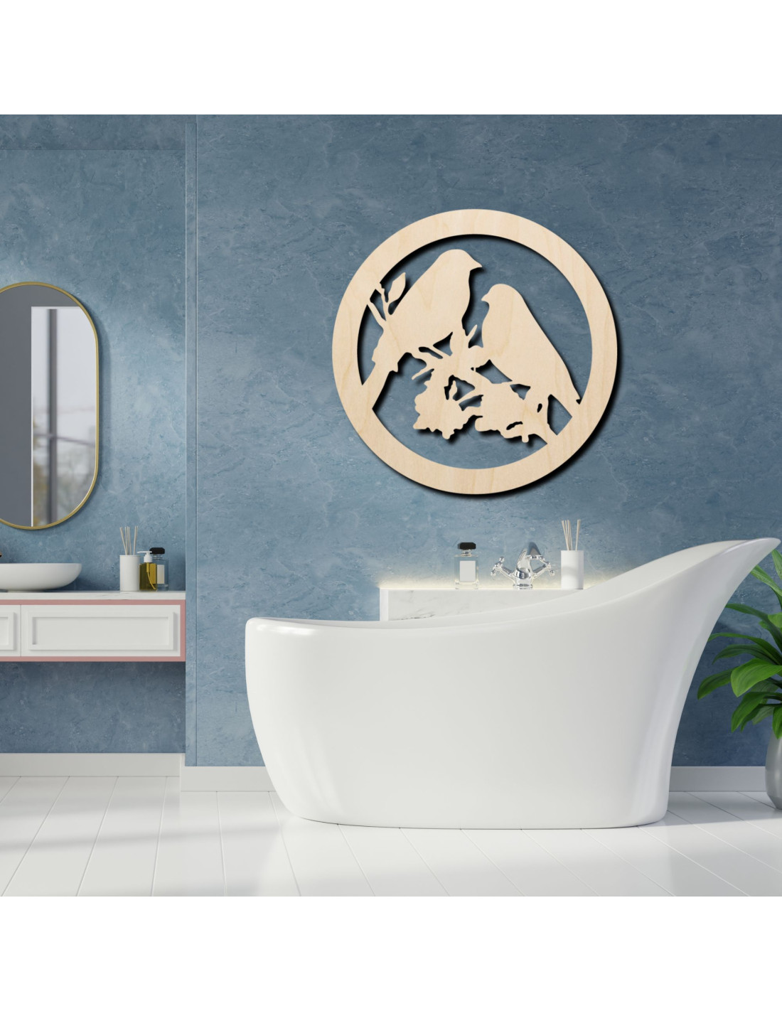 Malowidło ścienne z drewna przedstawiające ptaki na gałęzi - BIERDO