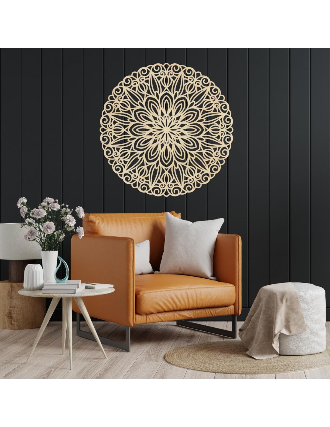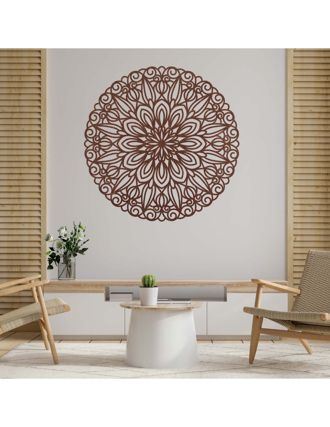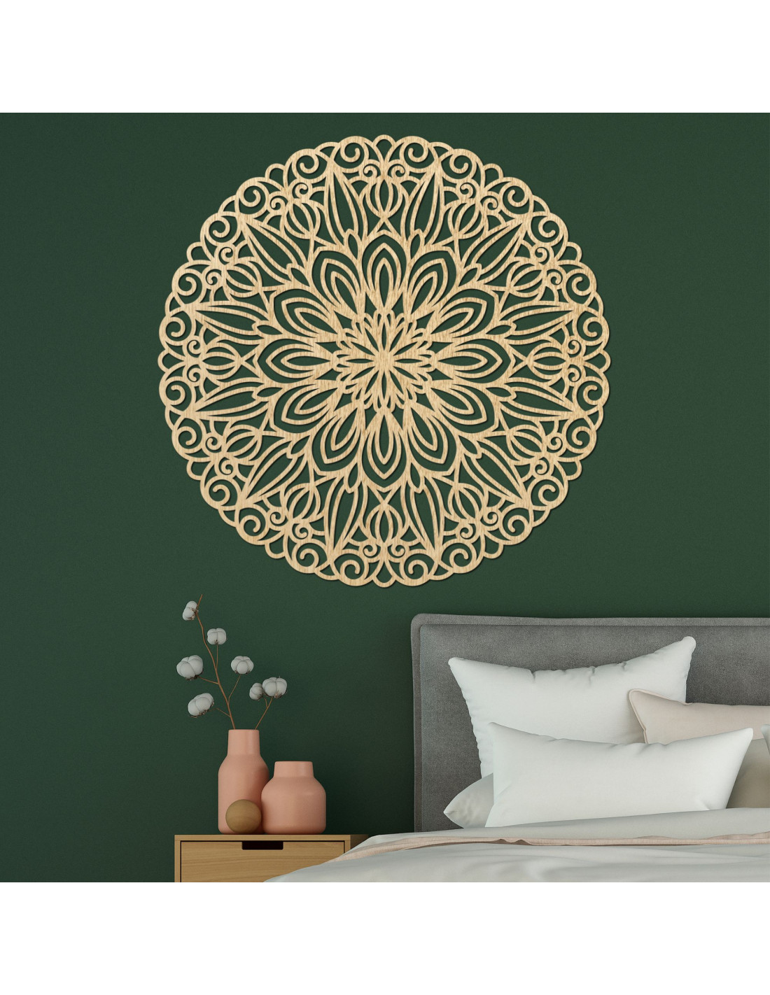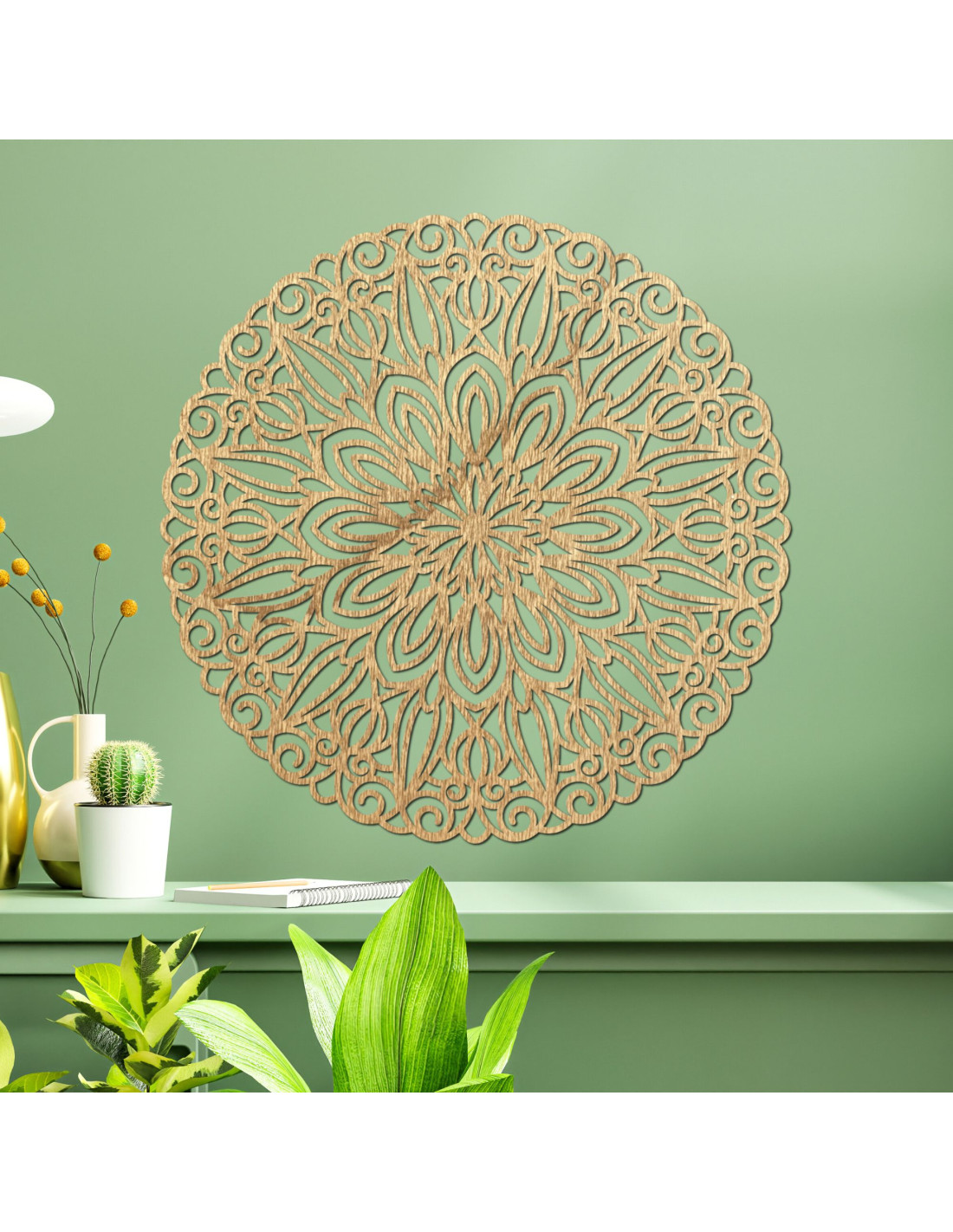 Drewniana mandala doda harmonii, elegancji i artystycznego uroku każdej przestrzeni.