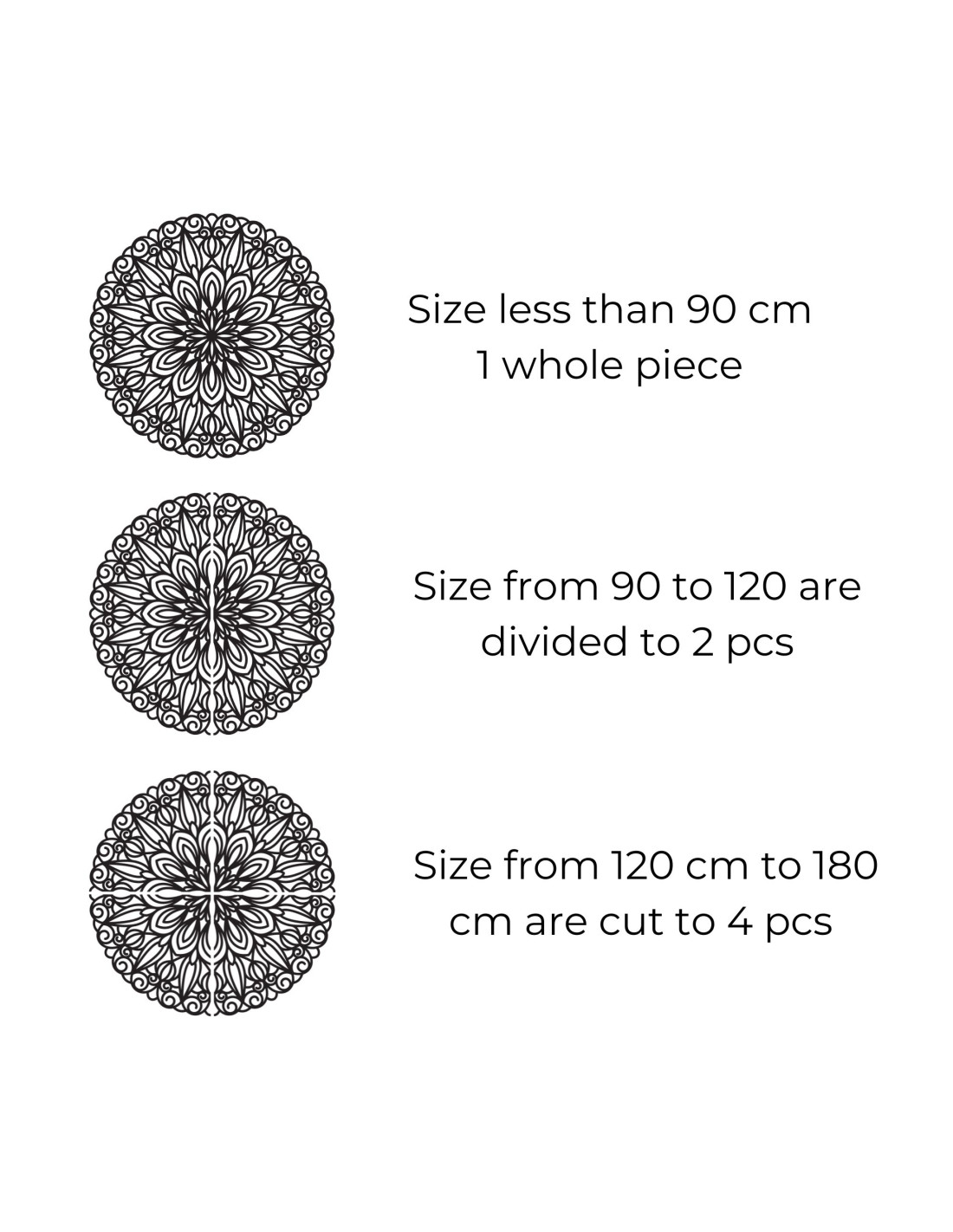 - Od 140 cm do 180 cm – podzielone na cztery części (lub więcej), aby zachować dokładną geometrię wzoru.